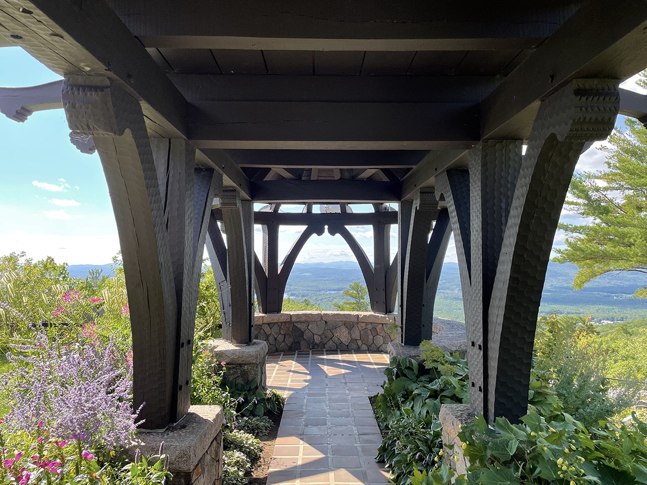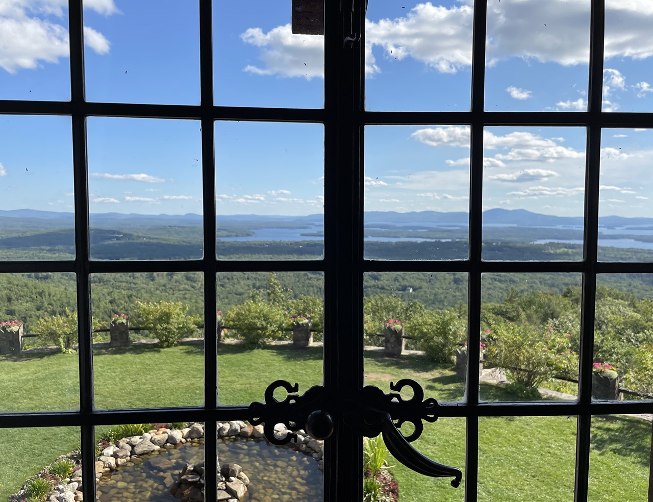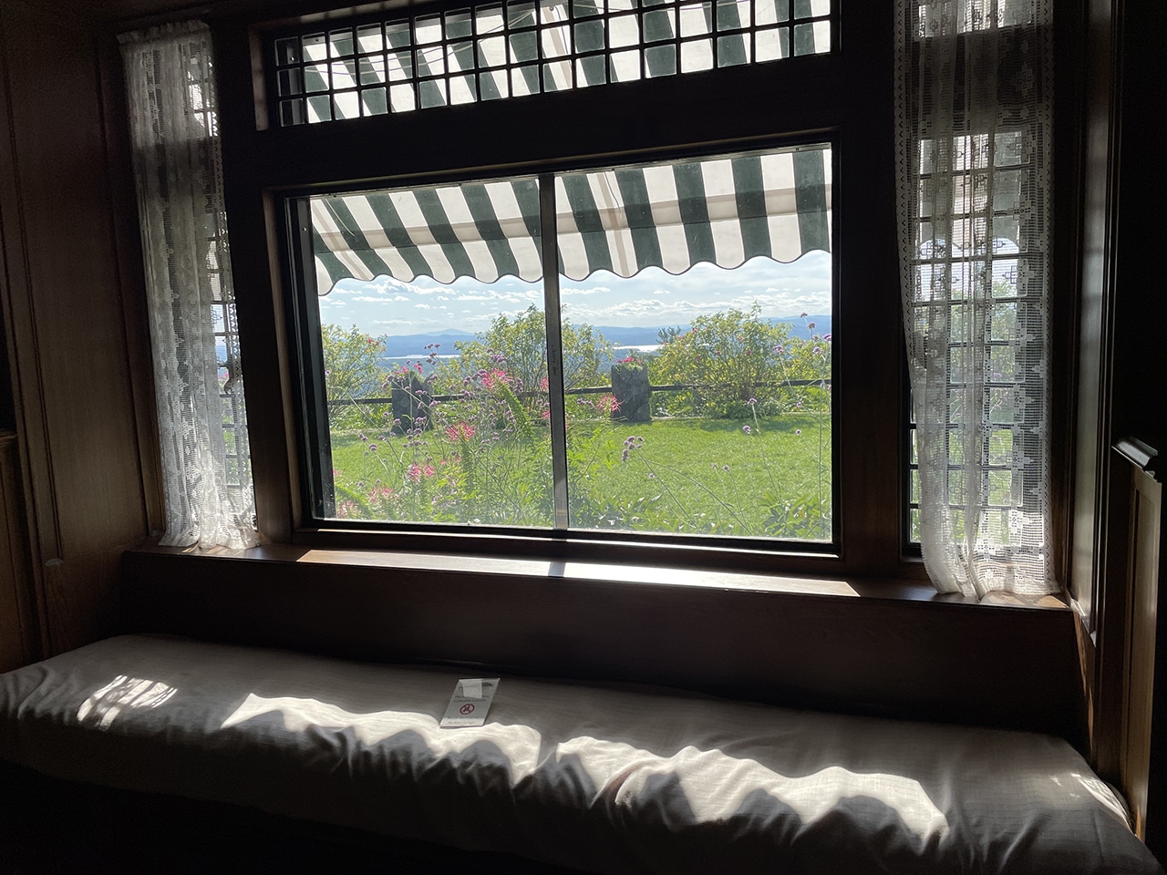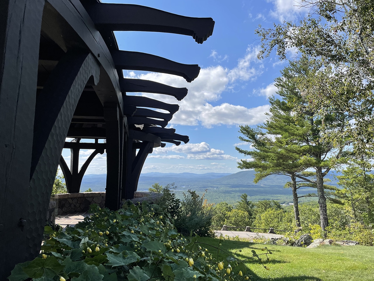 While we waited for our tours to start, we enjoyed 180-degree views of Lake Winnipesaukee from under the pergola. It was fabulous from every angle.