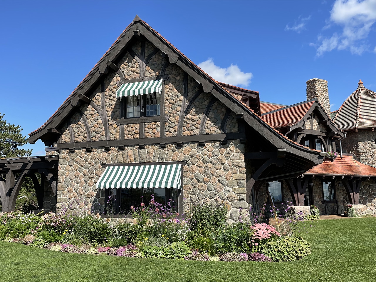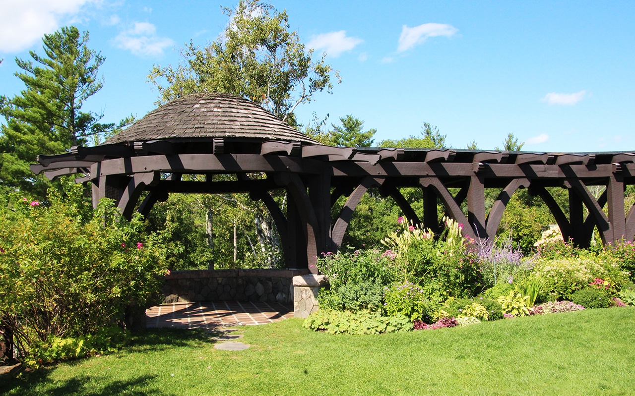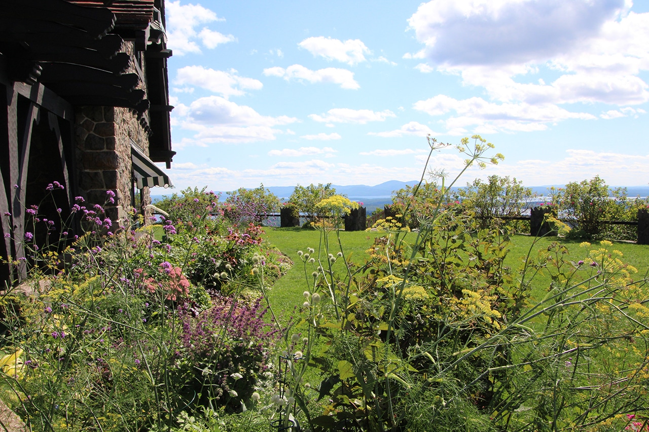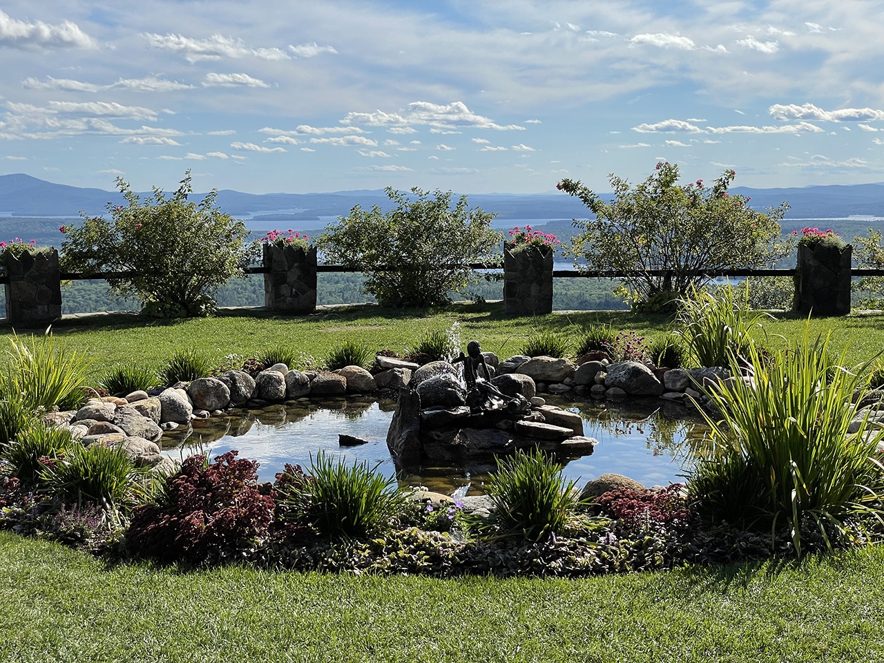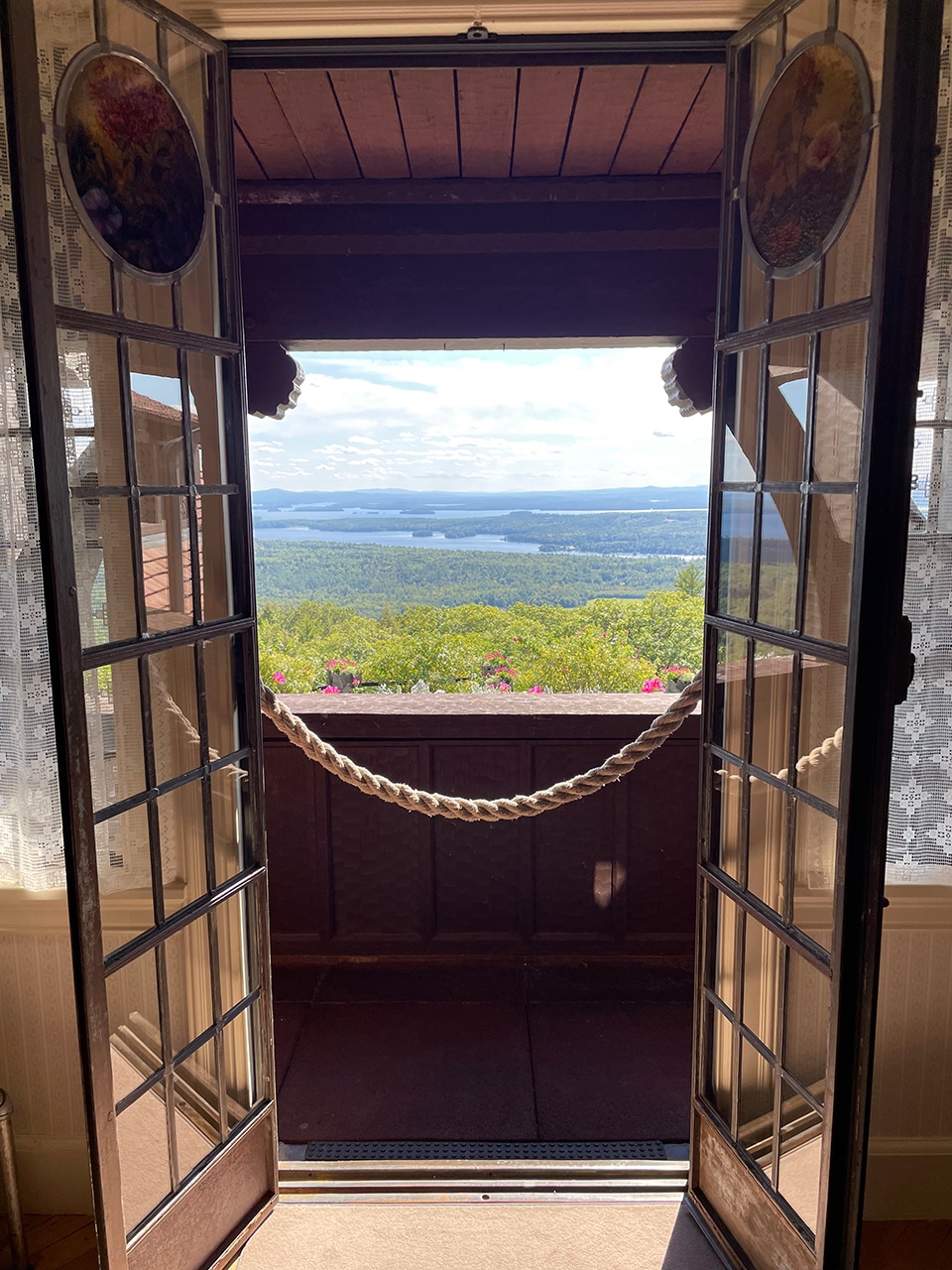 While we waited for our tours to start, we enjoyed 180-degree views of Lake Winnipesaukee from under the pergola. It was fabulous from every angle.
