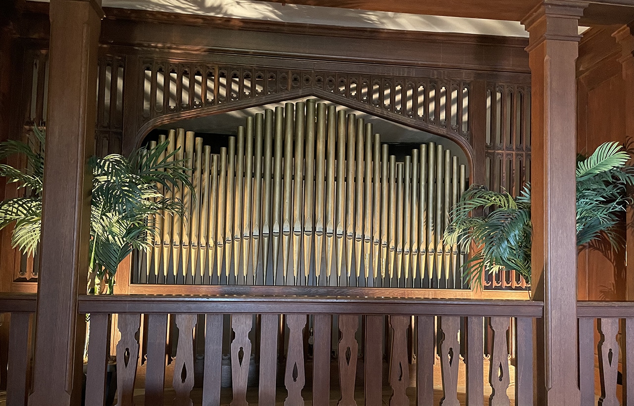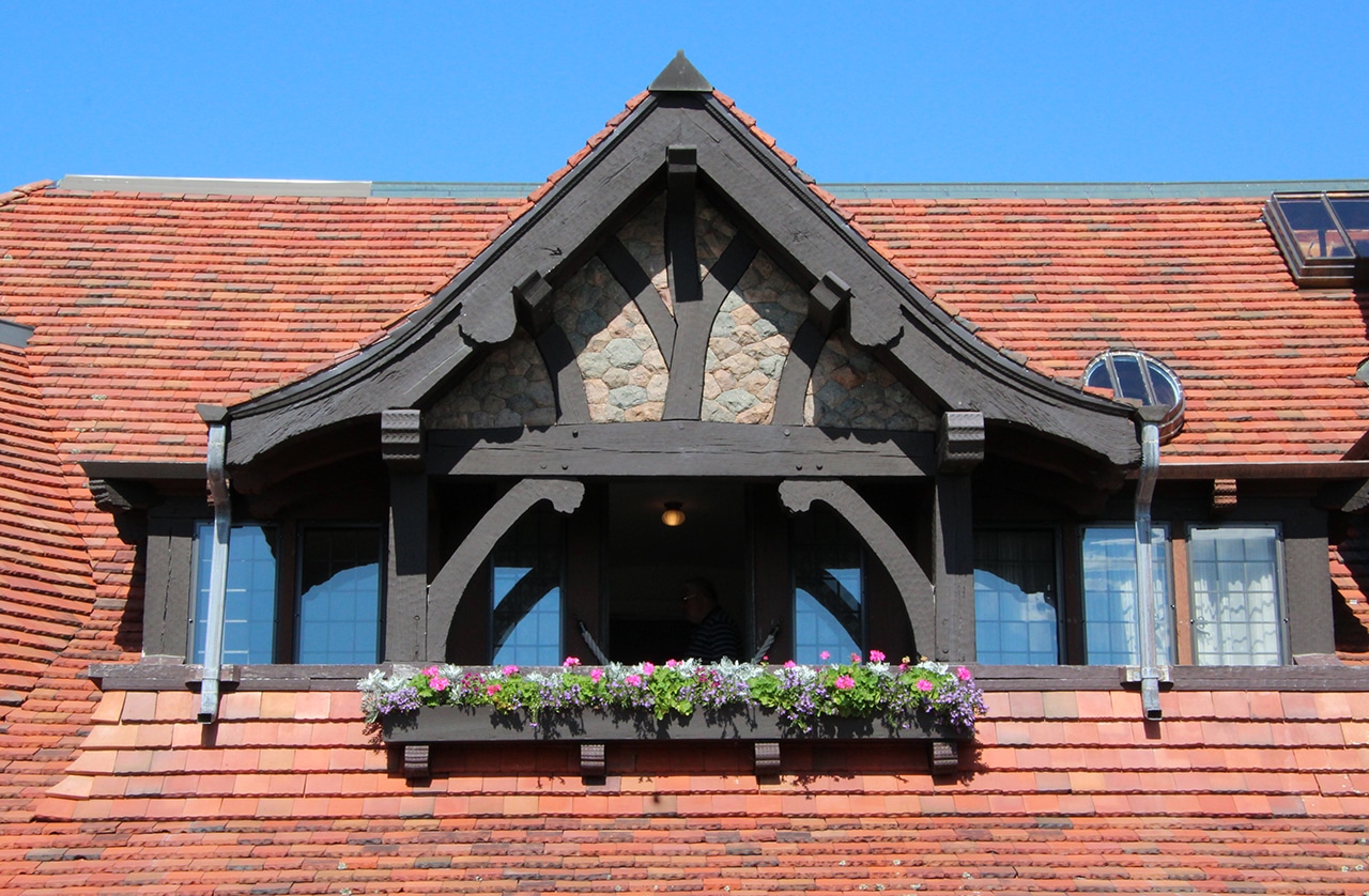 “The oak woodwork (hand hewn), which comprises a large part of the outside structure, was made by old time craftsmen in the shipyards at Bath, Maine. These men are skilled in the shaping and fastening together of ship timbers with oaken dowels, work that lasts a lifetime.” ~ Thomas G. Plant, 1924