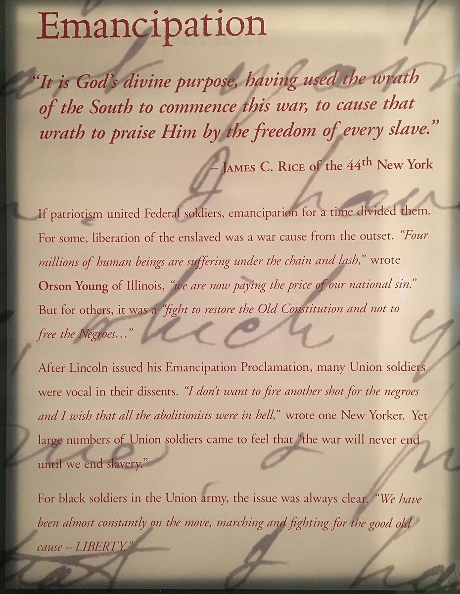 There were videos set up by benches throughout the museum if you needed a break. Some videos were of actors portraying certain important figures of the time – others were more informational with folks talking about past events. I particularly enjoyed the woman who was anxiously awaiting the return of her husband from war. Another was a nurse which was very moving. Working with the wounded, her stress levels were high and her emotions ran rampant. Of course others portrayed soldiers who were hell-bent on fighting the cause and others who were praying they were doing the right thing.