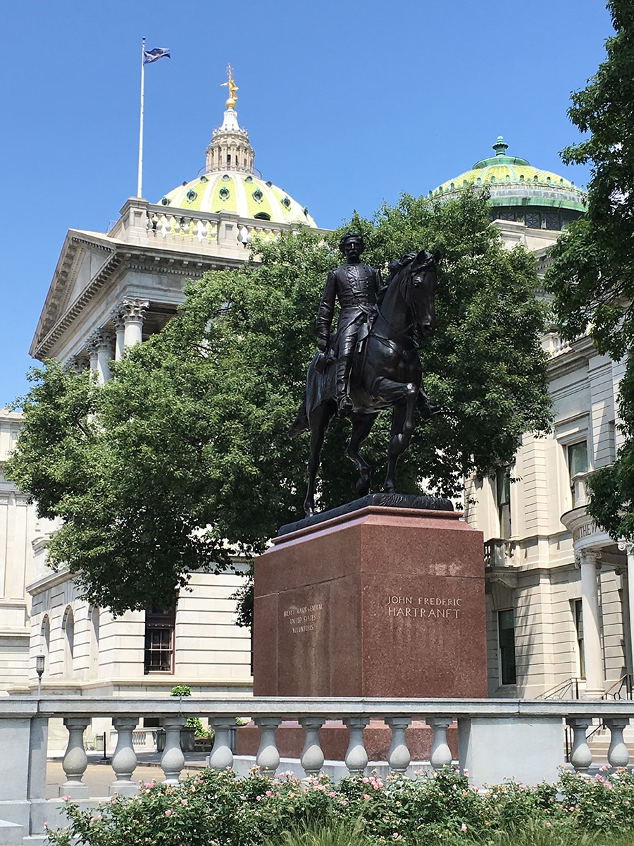 The statue in the photo below right is of a gentleman “fondly remembered as “Old Johnny” by the rank and file of the troops he commanded. John Frederick Hartranft became the second of Pennsylvania’s Civil War heroes to become governor after the war.” – READ MORE about John Frederick Hartranft