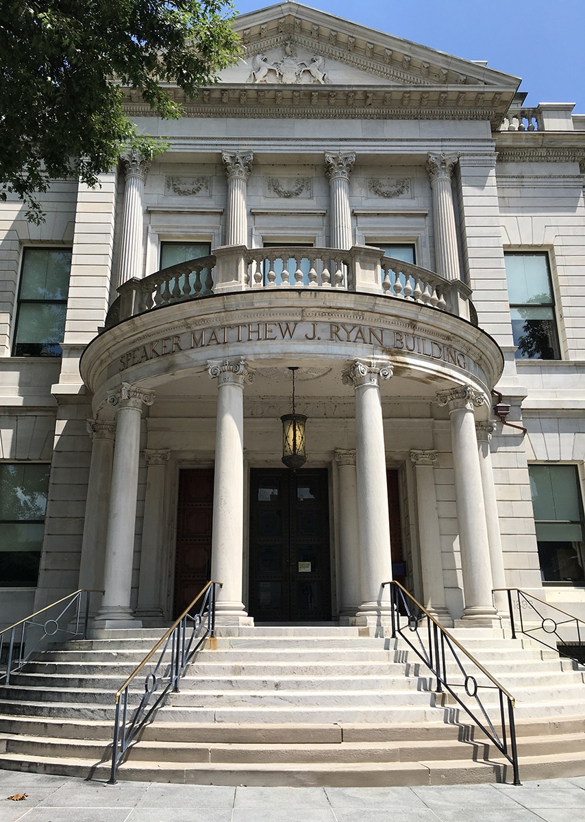 “Restored in the mid 1990’s, the Old Museum Building, also known as the Capitol Annex, was renamed after Matthew Ryan, the long-term Speaker of the Pennsylvania House of Representatives on June 14, 1999. Today it houses the offices of the members of the Pennsylvania House of Representatives.” – READ MORE about the Matthew J. Ryan Building
