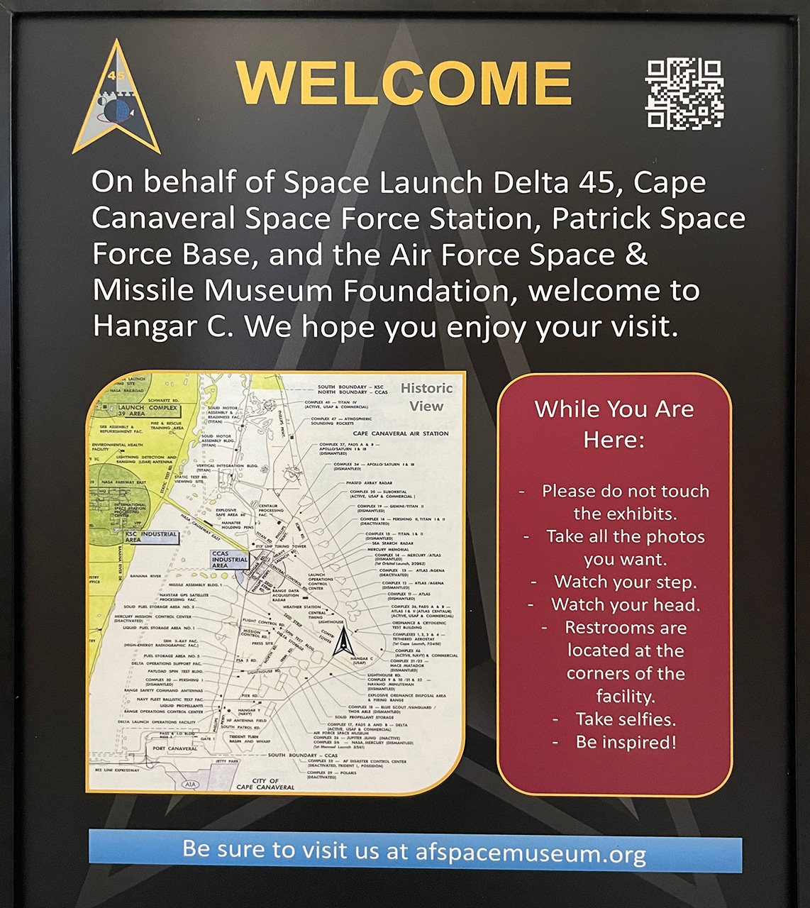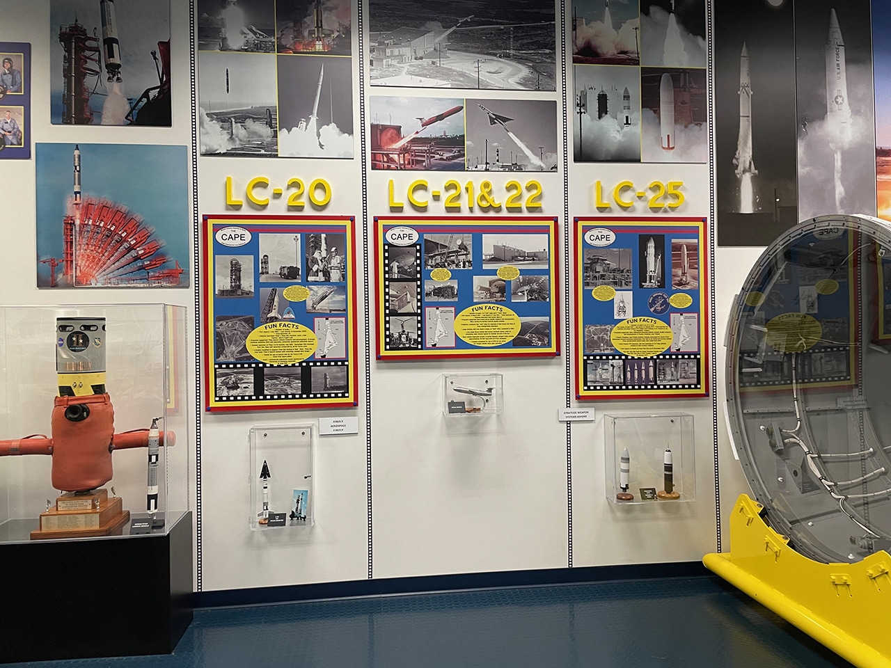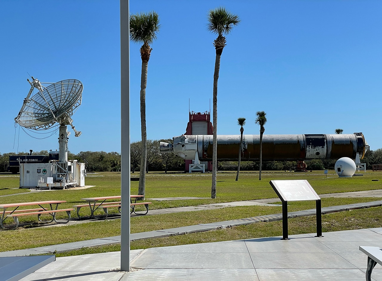 Named after Major General Harry J. ‘Bud’ Sands Jr., this museum is located just outside of Cape Canaveral Space Force Station, so no access pass is required and admission is free. It contains historic information and displays for each Launch Complex (LC) at Cape Canaveral Space Force Station. The chain blocking the sidewalk let us know we were not invited to visit the SpaceX Launch Ops building, but there was plenty of other stuff to keep us busy!