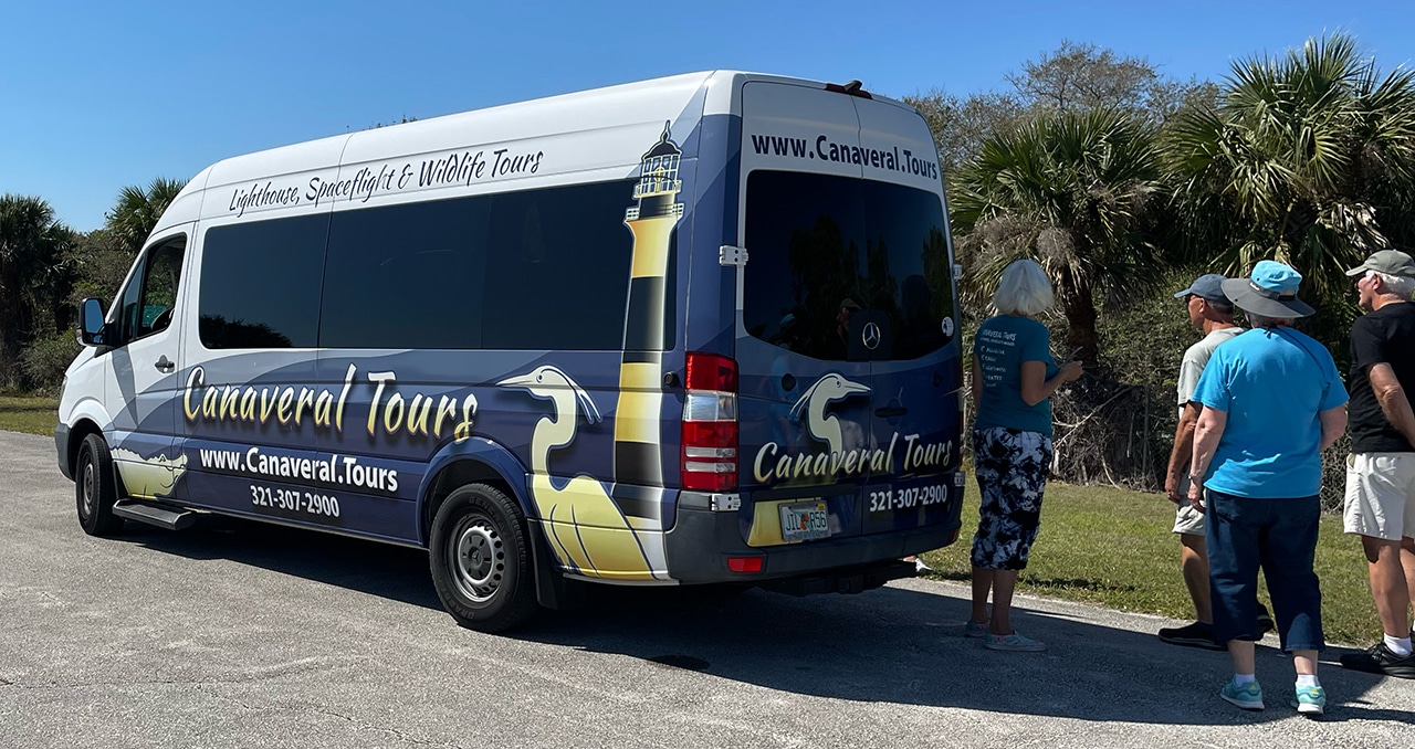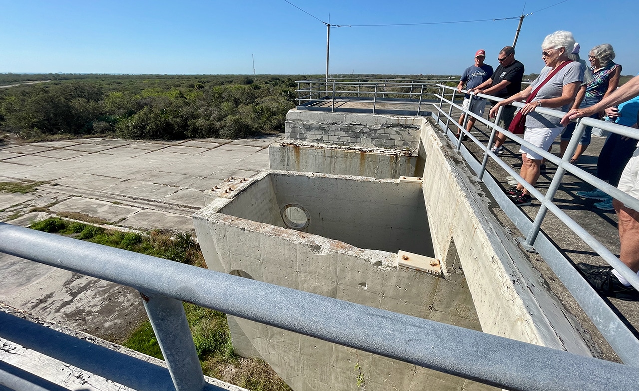 We met our van and tour guides at Exploration Tower, which unfortunately was closed for a maintenance project. Exploration Tower is a new and exciting place to “Have a Lunch or Watch a Launch.” From their two observation decks, there will be spectacular views of Port Canaveral and the surrounding area. As of today (1/1/24), it’s still not open but once it is, check the website for future launches because that would probably be an event to remember!
