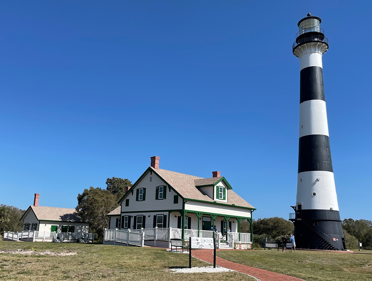 “The Cape Canaveral Lighthouse has stood on the Cape for over 150 years. Situated amidst America’s Premier Gateway to Space, the lighthouse is owned by the United States Space Force and maintained as an active aid to navigation by the United States Coast Guard. Visits to the lighthouse, museum, and gift shop are available via prescheduled tours, only.” ~ READ MORE