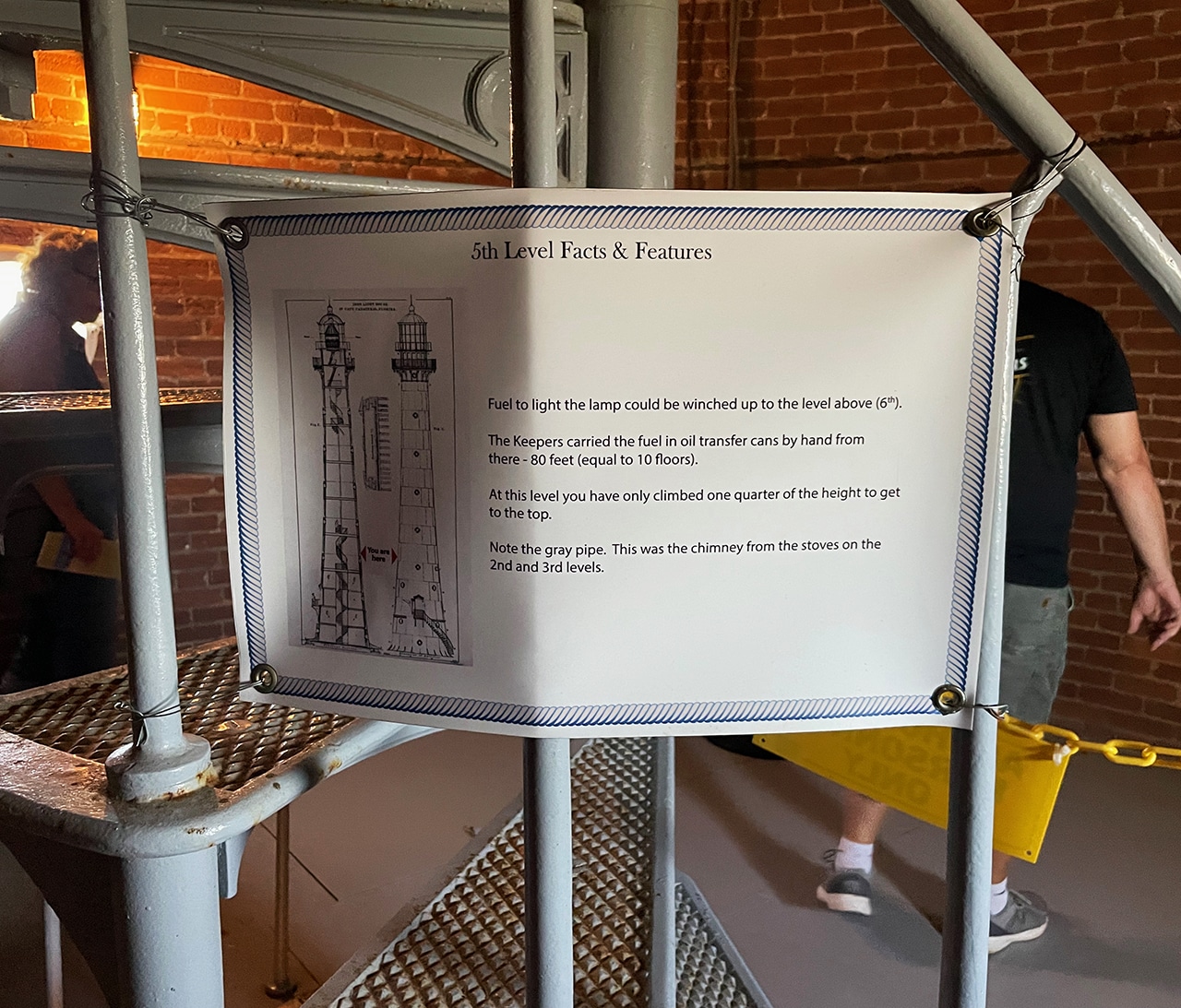We spent about an hour at the Lighthouse, and a docent provided a semi-guided tour. The first five floors of the lighthouse inside are available for climbing and we exited via the third floor staircase outside the lighthouse. Plenty of signage gave us an idea of what each floor was used for, and someone was there to answer questions at all times.