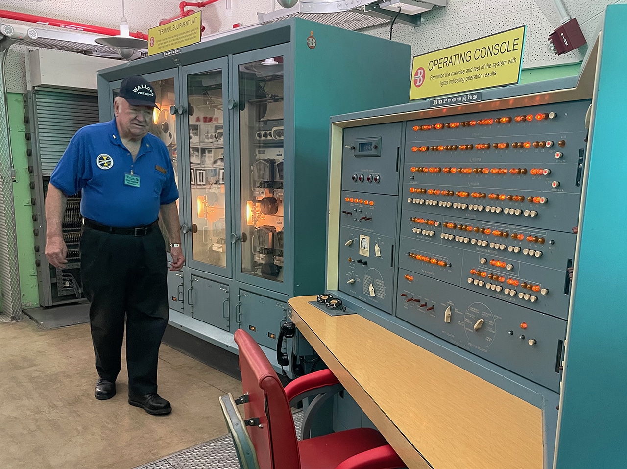 The windows are composed of three segments of glass, each comprised of 15 layers of one-quarter inch glass, for a total of 45 layers of glass per window, measuring about one-foot thick. The double set of blast doors are made of heavy armor-like plating. This sturdy construction was to afford those working in the blockhouse (situated a mere 400 feet from the launch pads) with a measure of protection from an explosion.