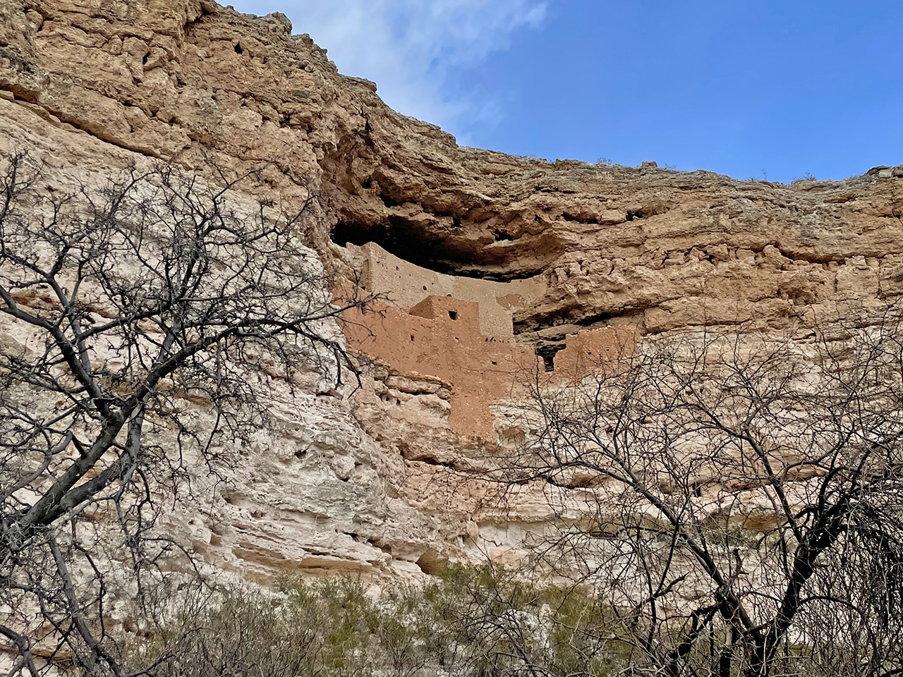 The first time we visited Montezuma Castle was a gorgeous day in June with friends. We thoroughly enjoyed the benches that were strategically placed, to relax and bask in the sun after getting a dose of history. Today was a terrible day – chilly with clouds and brisk winds – but thankfully no rain. We didn’t bask, not even once unfortunately, but we definitely enjoyed the stop.