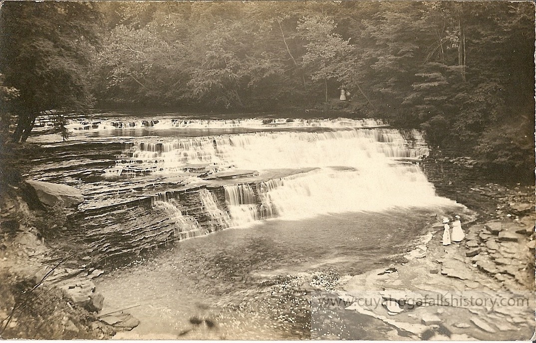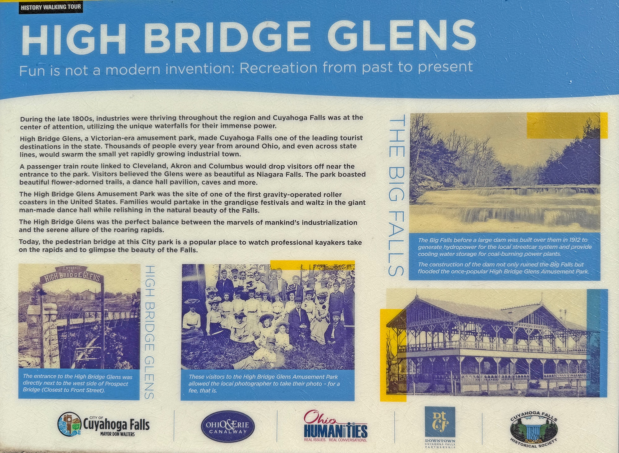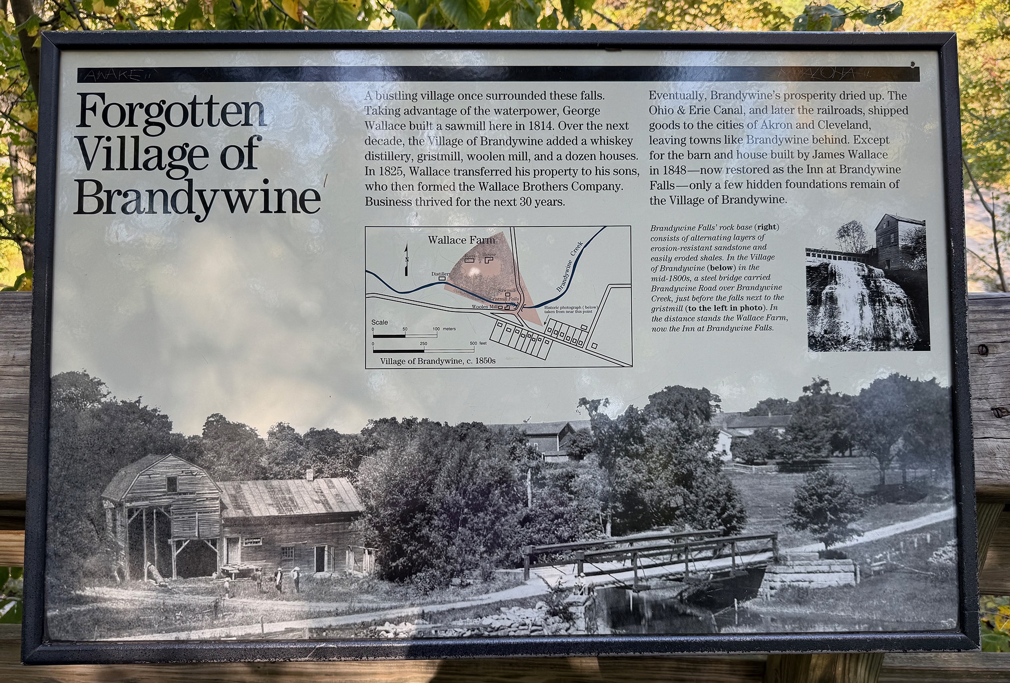 The sign below shows a before and after picture of Big Falls, along with an artist rendering of the soon-to-become free-flowing Cuyahoga River. The photo below and two other photos were taken before this dam was put in, and are found at the link.