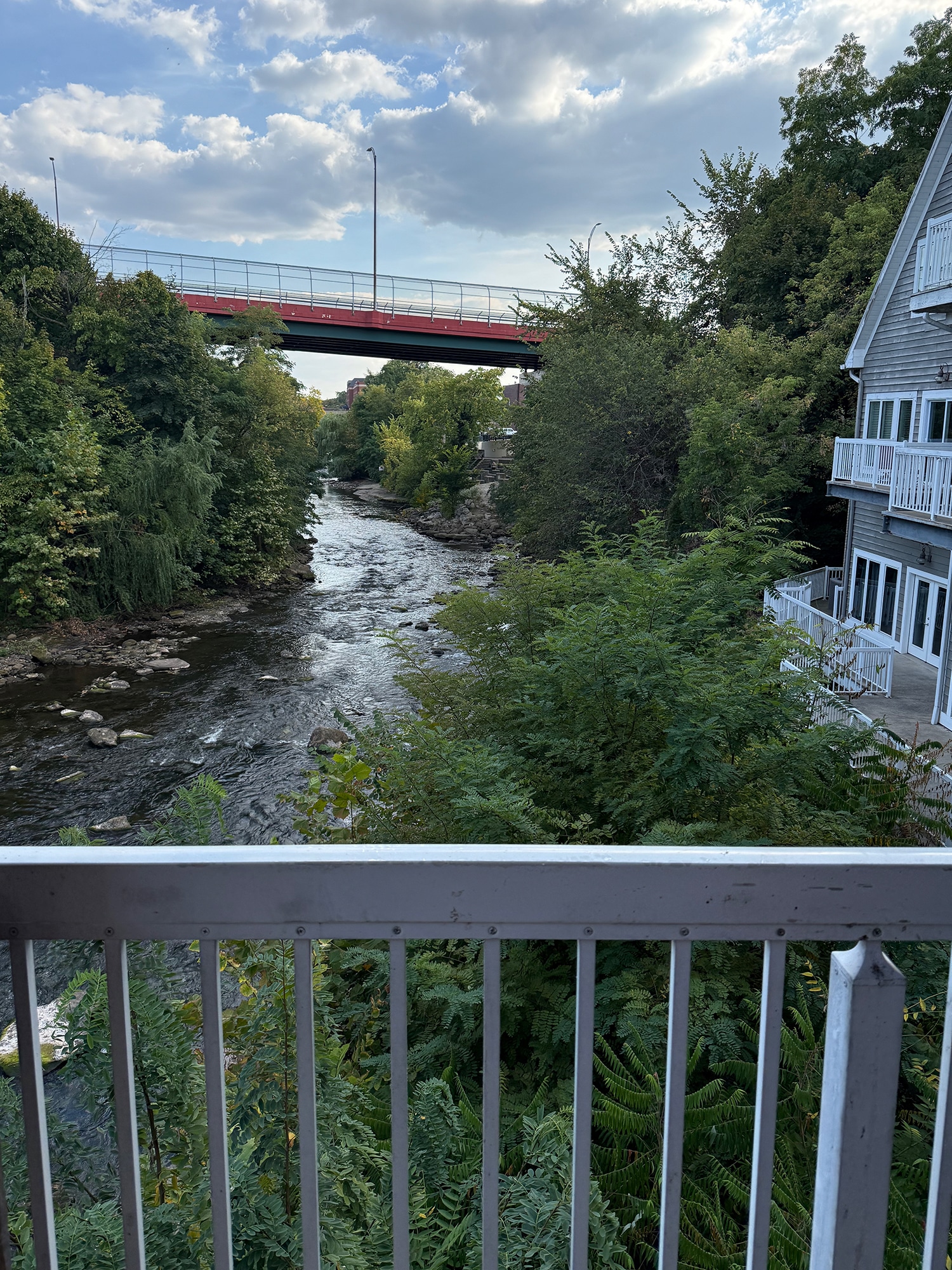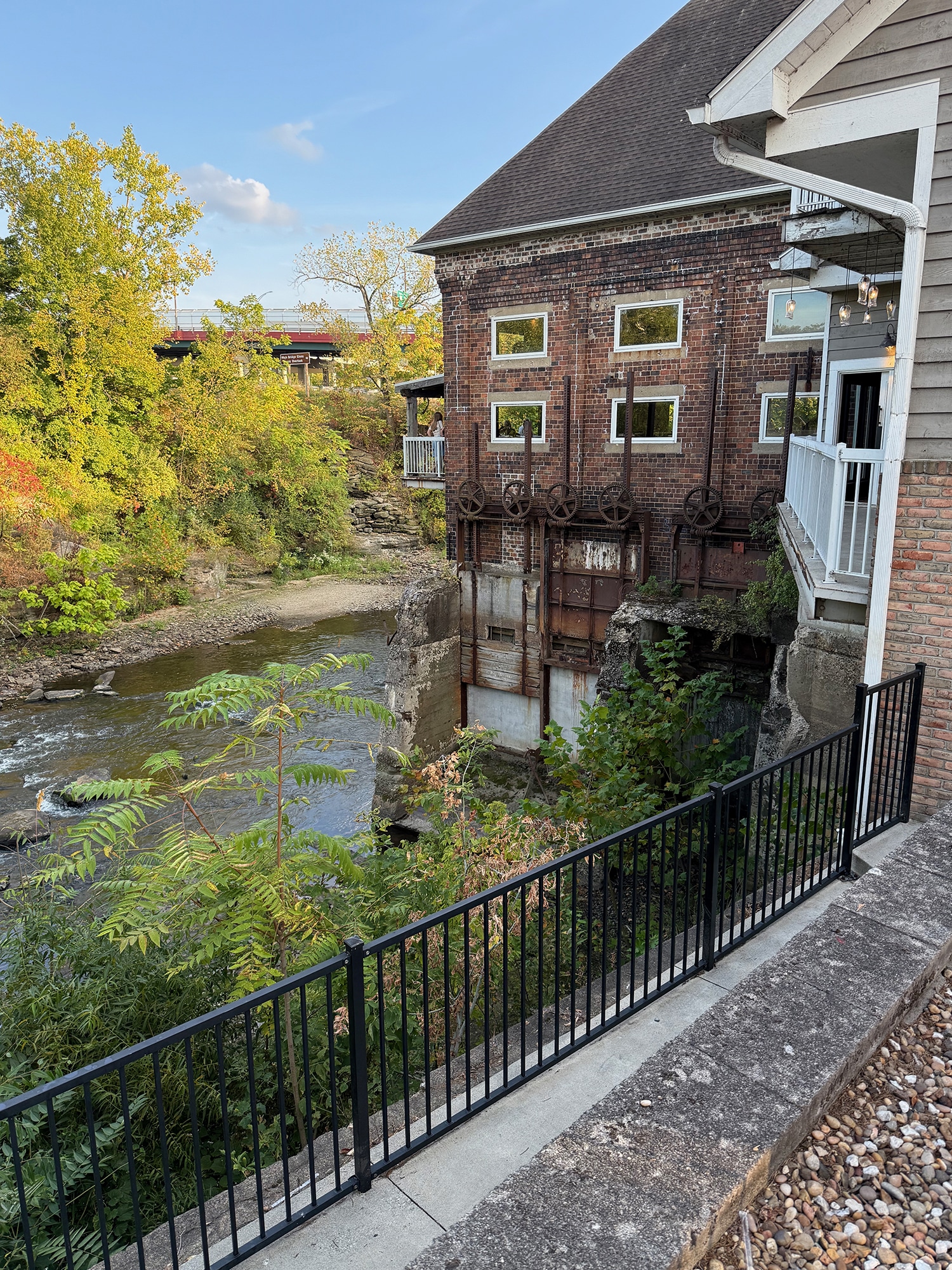 We got up pretty early this morning so we could arrive in Cuyahoga Falls, OH with some time to look around. After a short tour of the town, we found the Burntwood Tavern and decided to stop for sliders and a couple of Sam Adams on their deck overlooking the Cuyahoga River. There’s a great arial view of the tavern at their link – along with more history.
