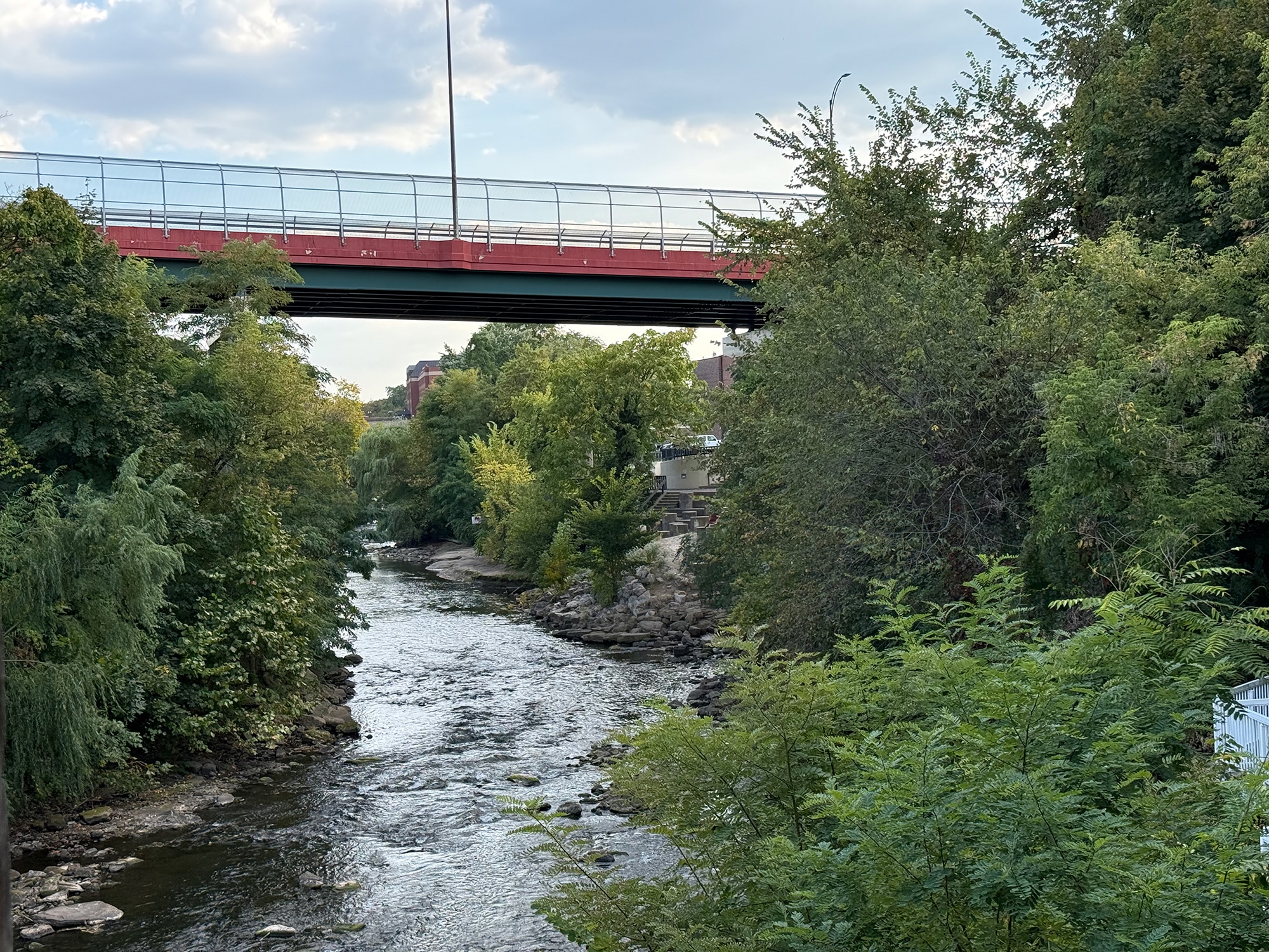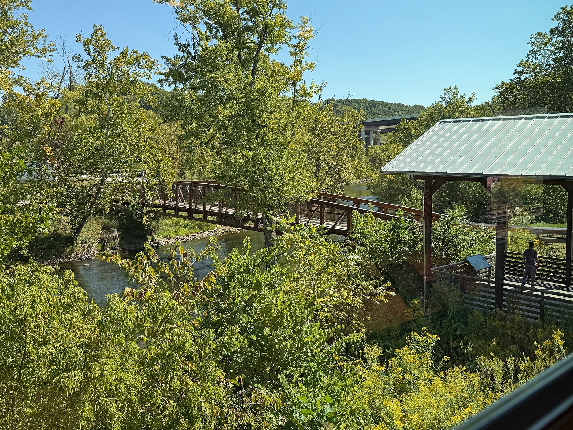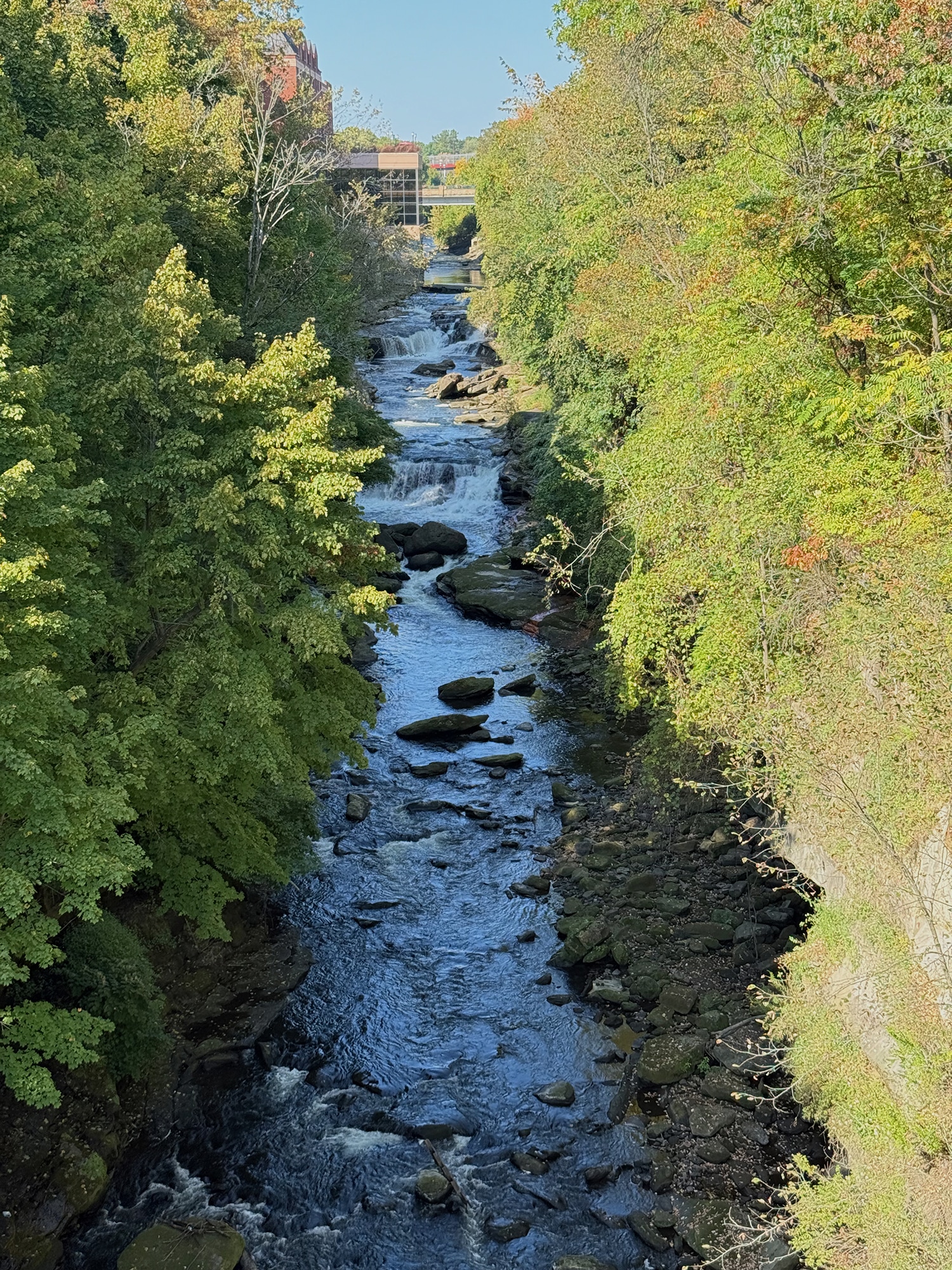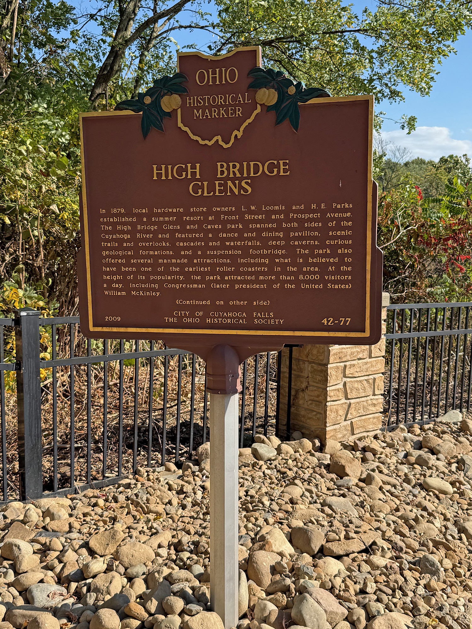 High Bridge Glens Park was an awesome neighborhood park – one of 26 in Cuyahoga Falls – with great views of Cuyahoga River and several small falls right in town. As we looked up the river, we could almost see the Burntwood Tavern where we had dinner last night. At this great location we were only five minutes from tonight’s dinner!