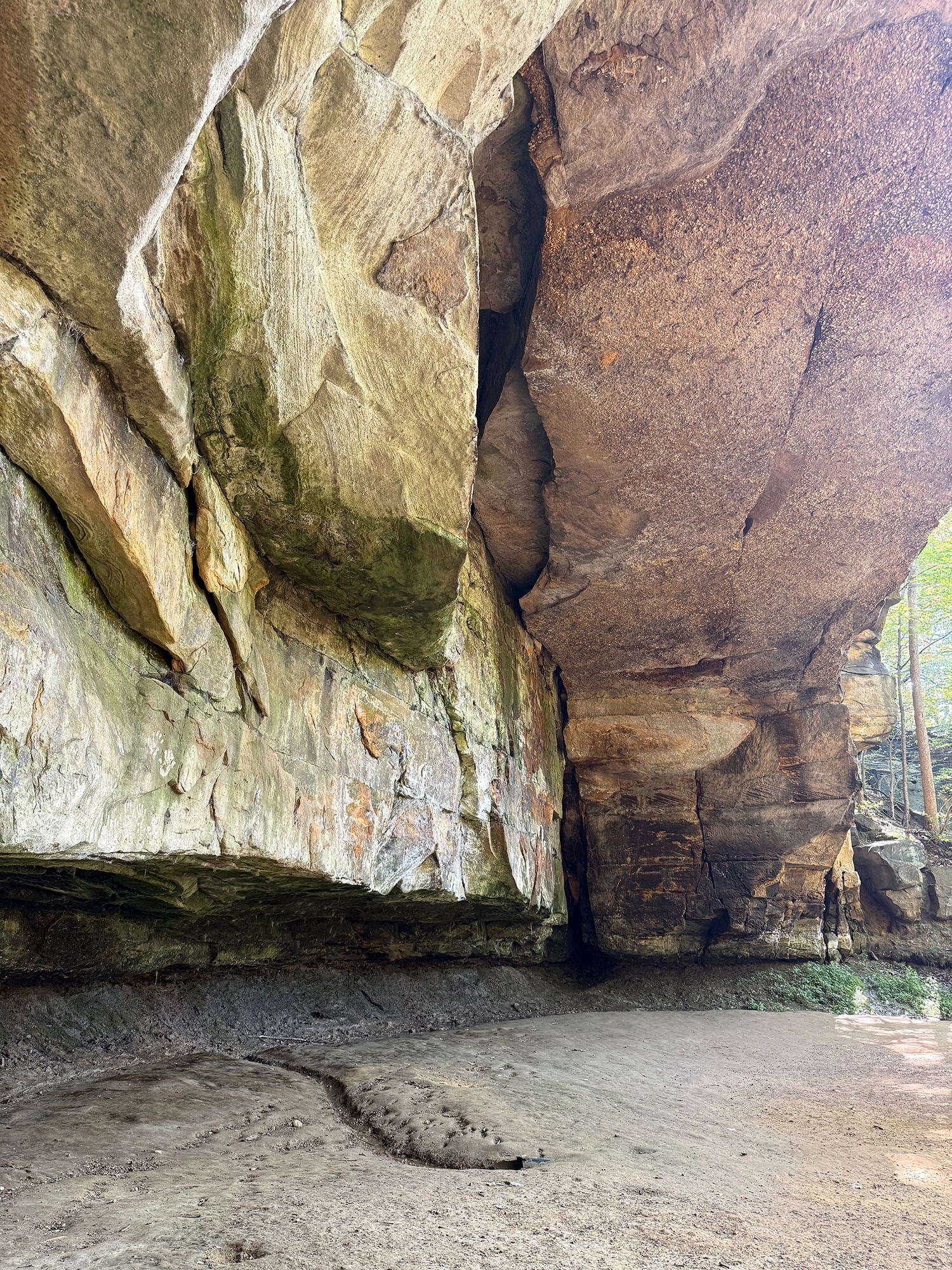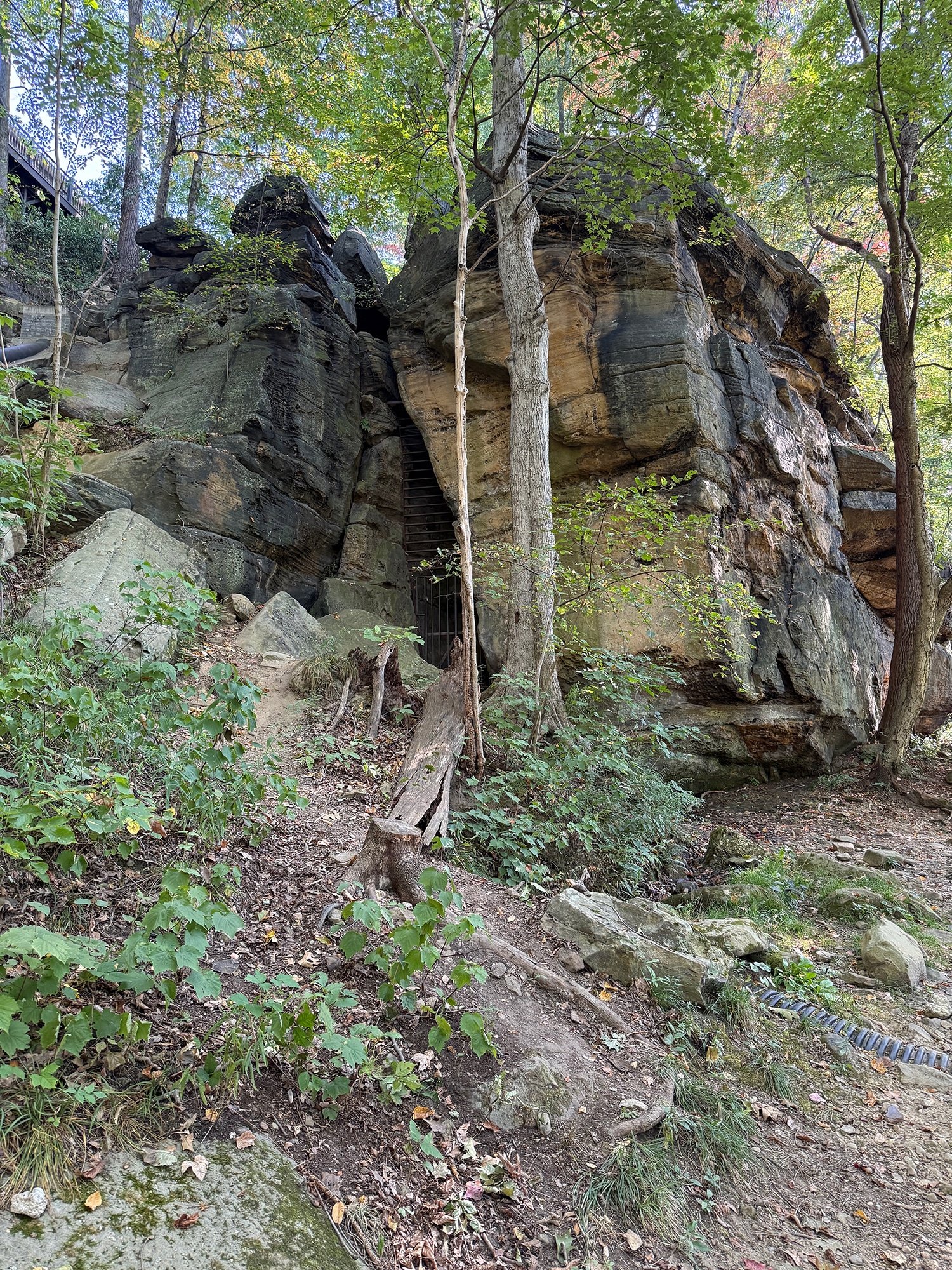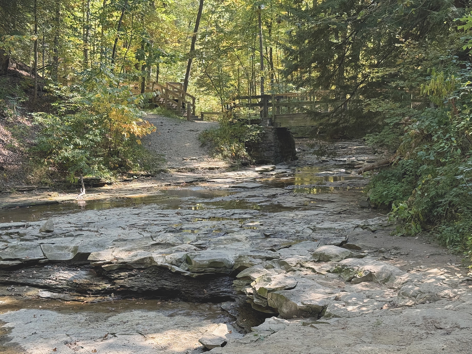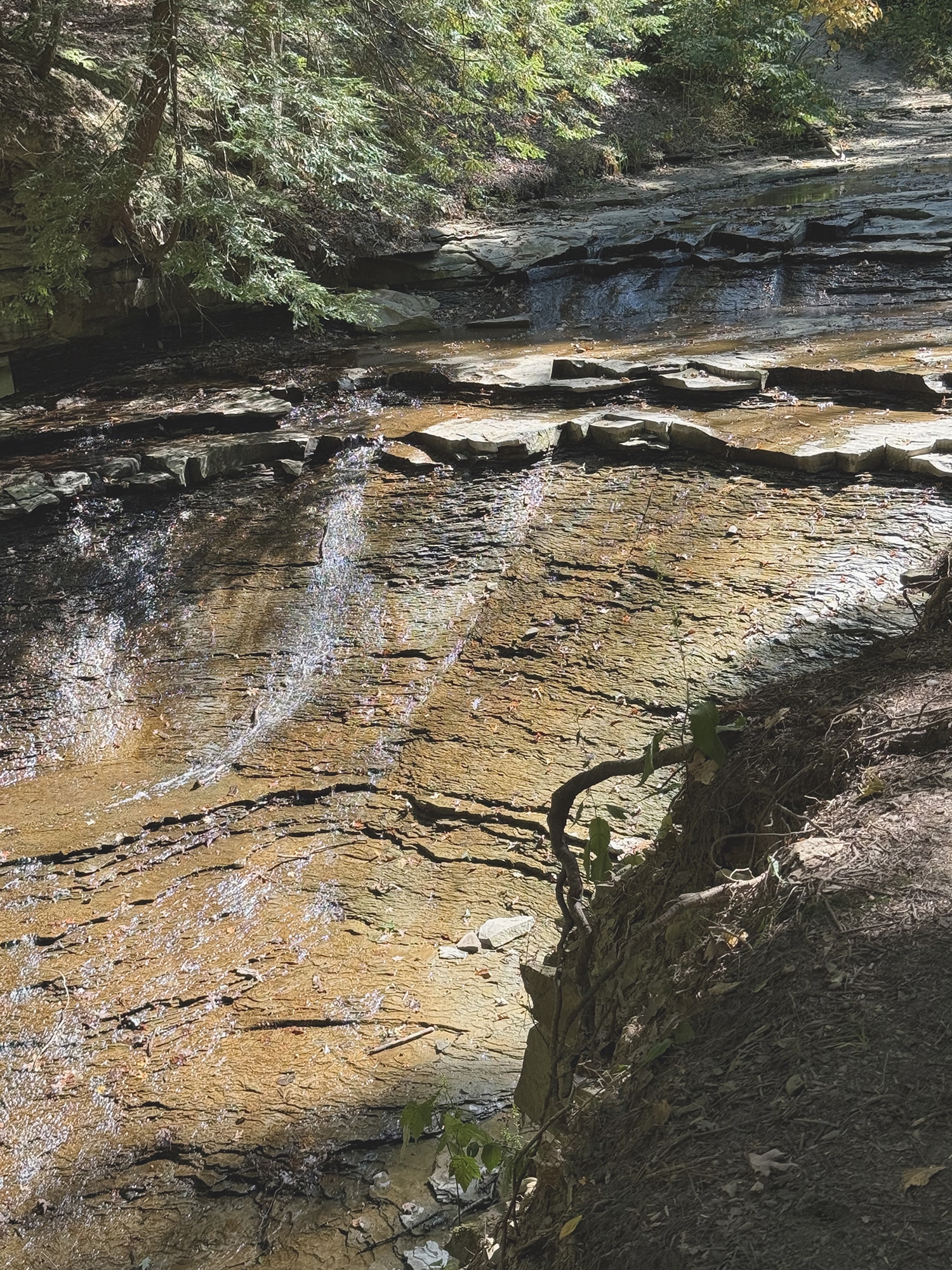 Surrounded by hardwoods and hemlocks, Bridal Veil Falls is a short walk along Deerlick Creek with a boardwalk and a few steps. Our timing was not good with very little water flowing, so we focused on the nice and cool walk in the woods. I can see where this fairly wide, cascading falls would be stunning with higher water levels.
