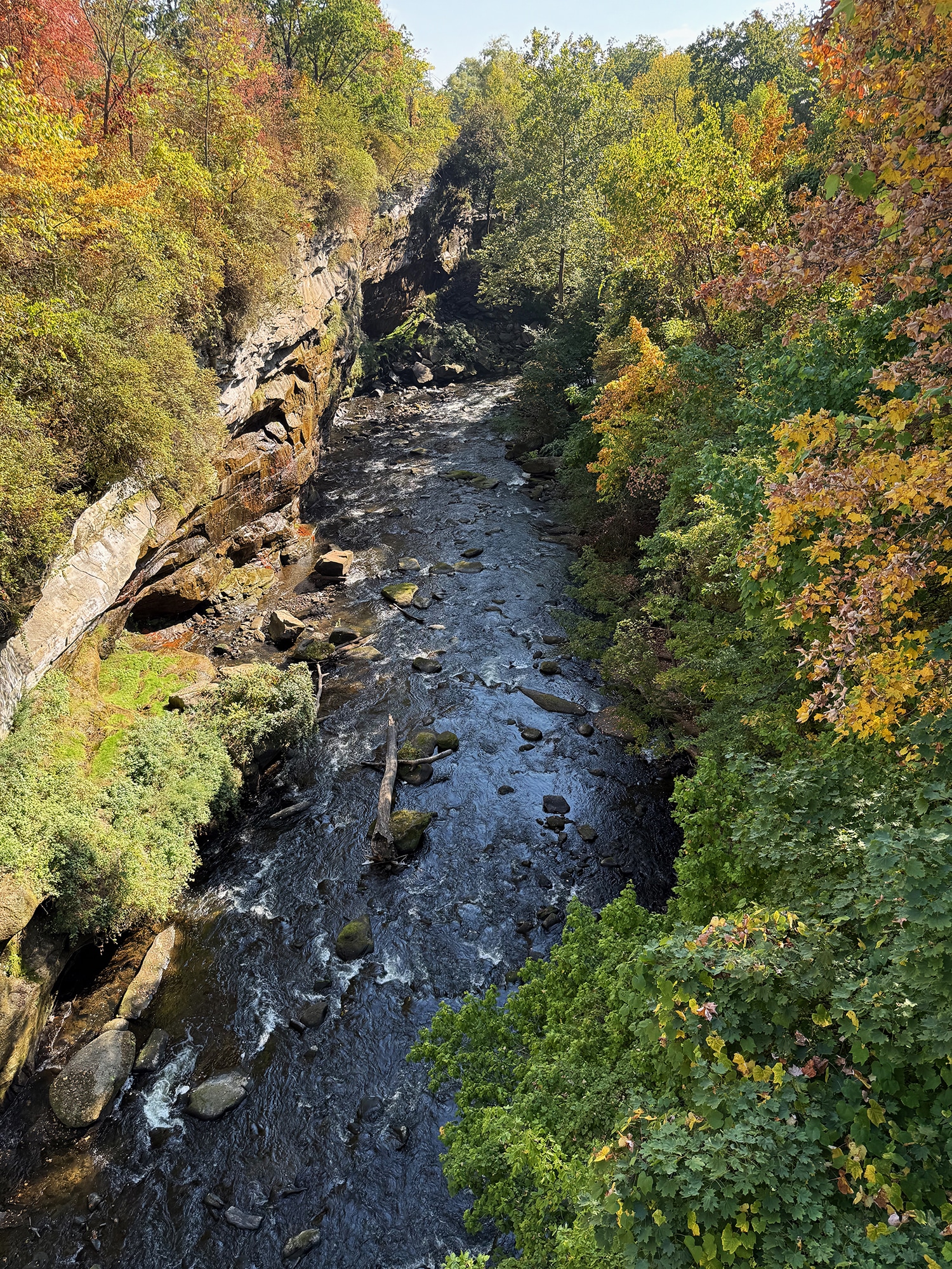 Clearly we should have walked the Brandywine Gorge Loop which circles a deep ravine carved by Brandywine Creek, with stunning views of Brandywine Falls along the way. It was a 1.5-mile hike with 160-foot elevation change, and if the water had been flowing better, I may have done the work. There are beautiful photos at both links if you’re interested. Next time!