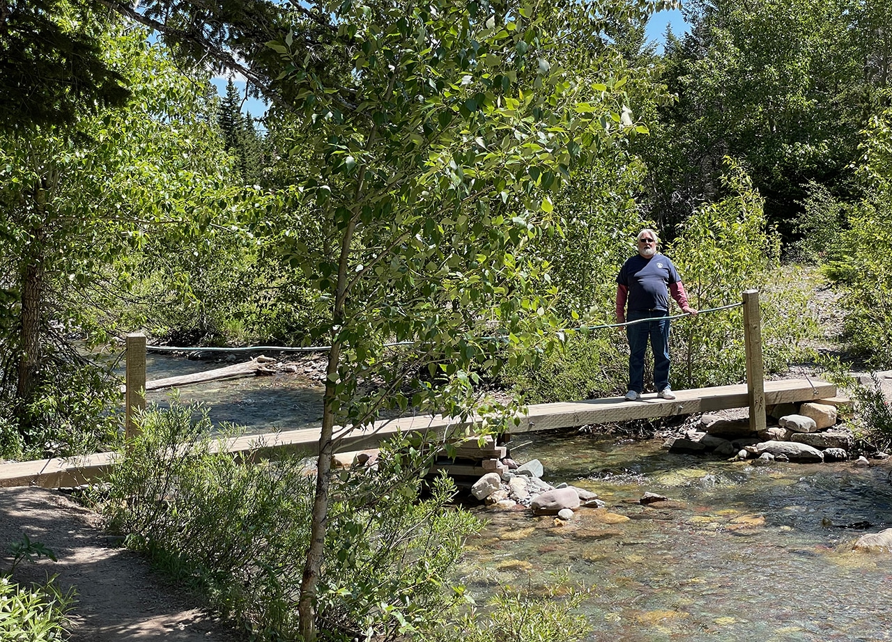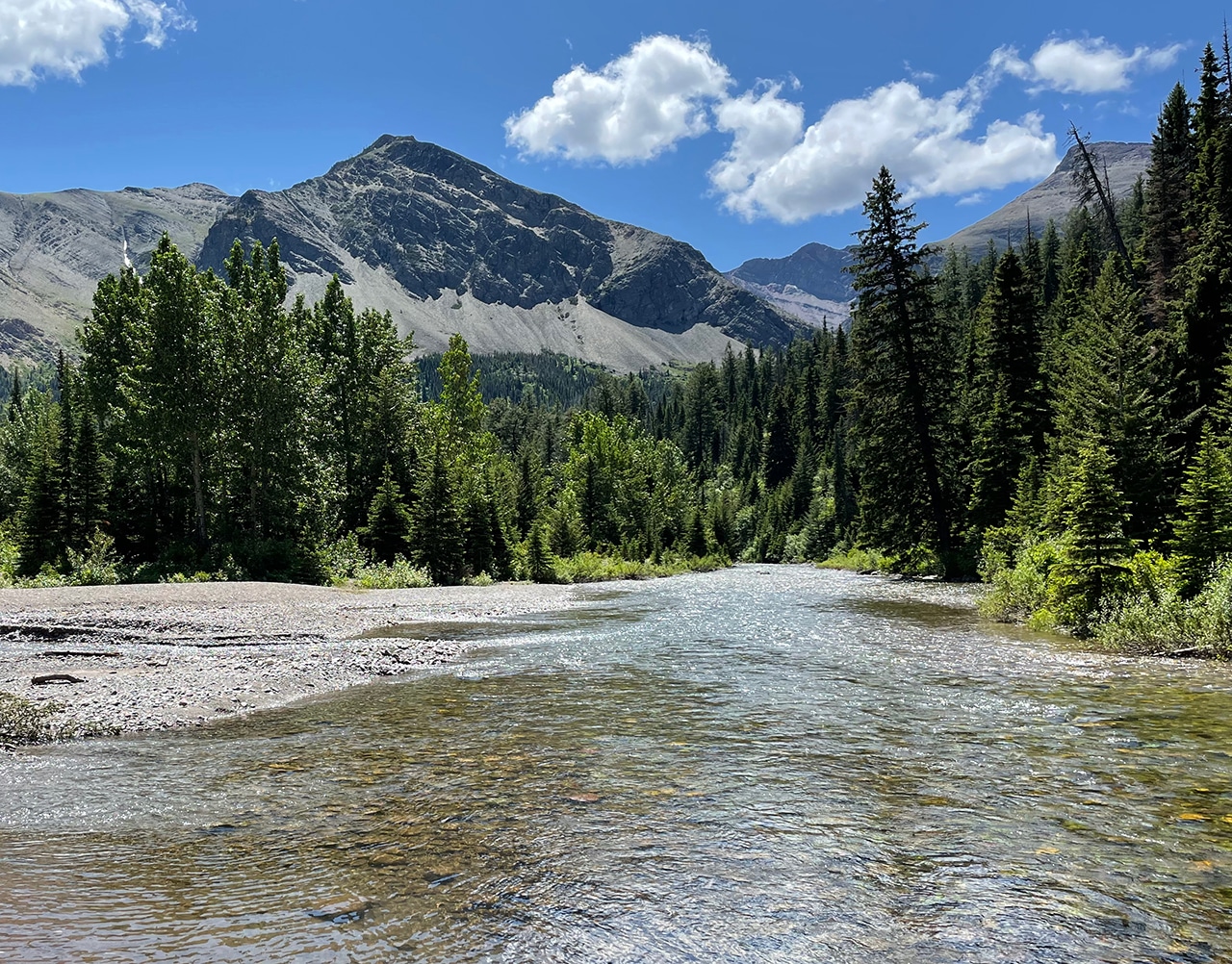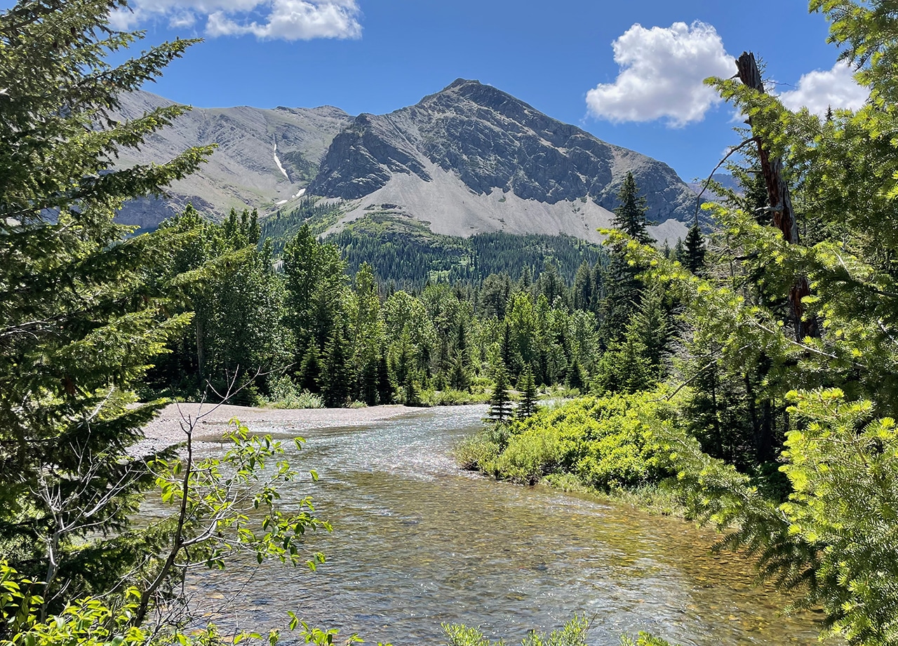 From the parking lot, it was just a short walk to the edge of Two Medicine Creek – and the clearest water I’ve seen in my life, burbling down a bed of multi-colored stones. A burbling creek has got to be number one on the list of nature’s stress-relievers – not that we’ve had much to be stressed about in the last five weeks.