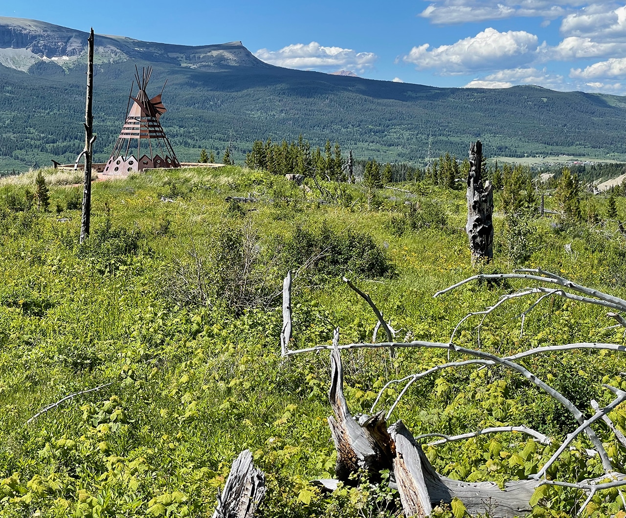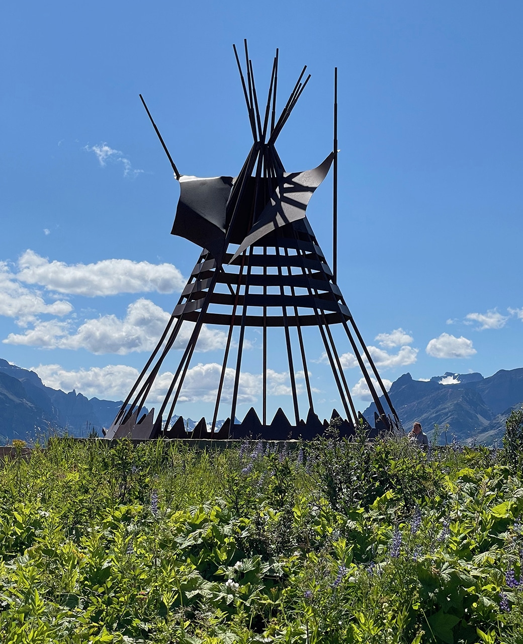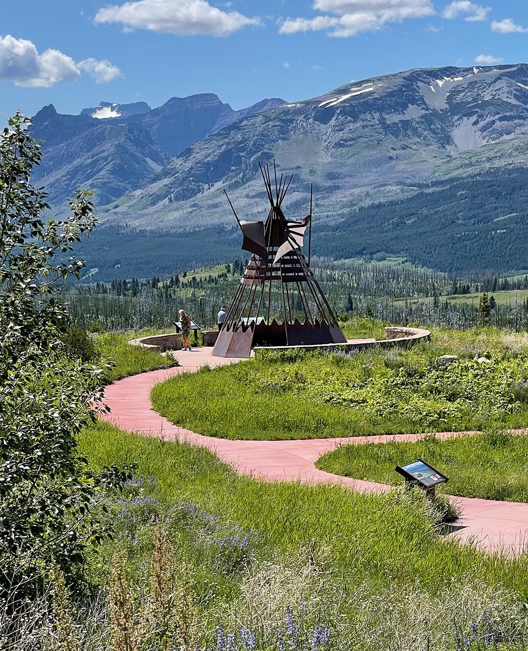 “St. Mary Overlook. Learn about the cultural and ecological history of the St. Mary Valley from the St. Mary Overlook. Located on the Blackfeet Reservation, approximately two miles south of St. Mary on Hwy 89, this picturesque viewing area features striking iron teepees designed by artist Duane After Buffalo.
