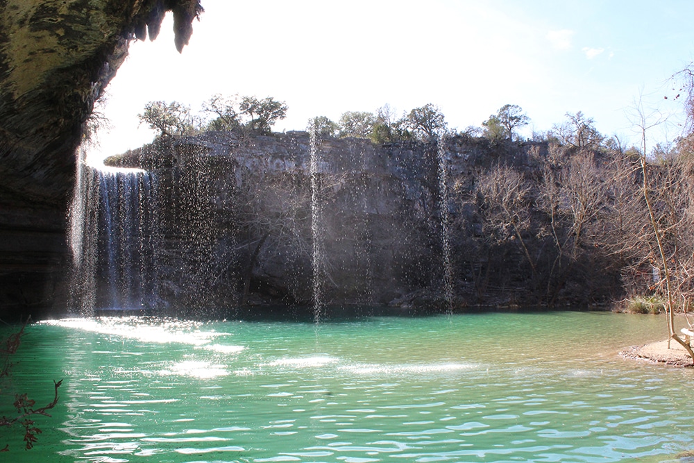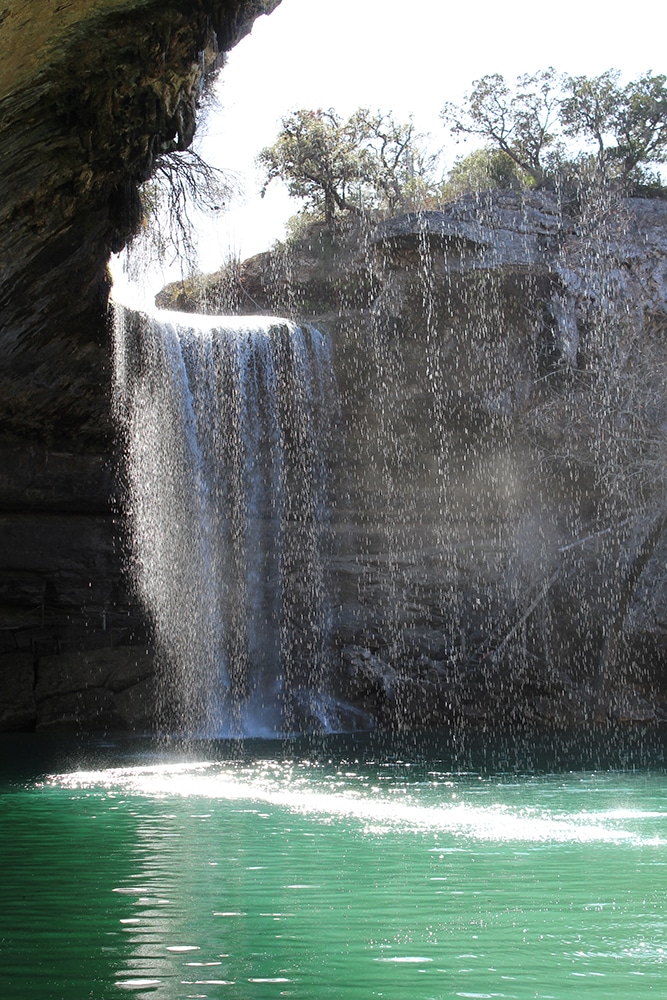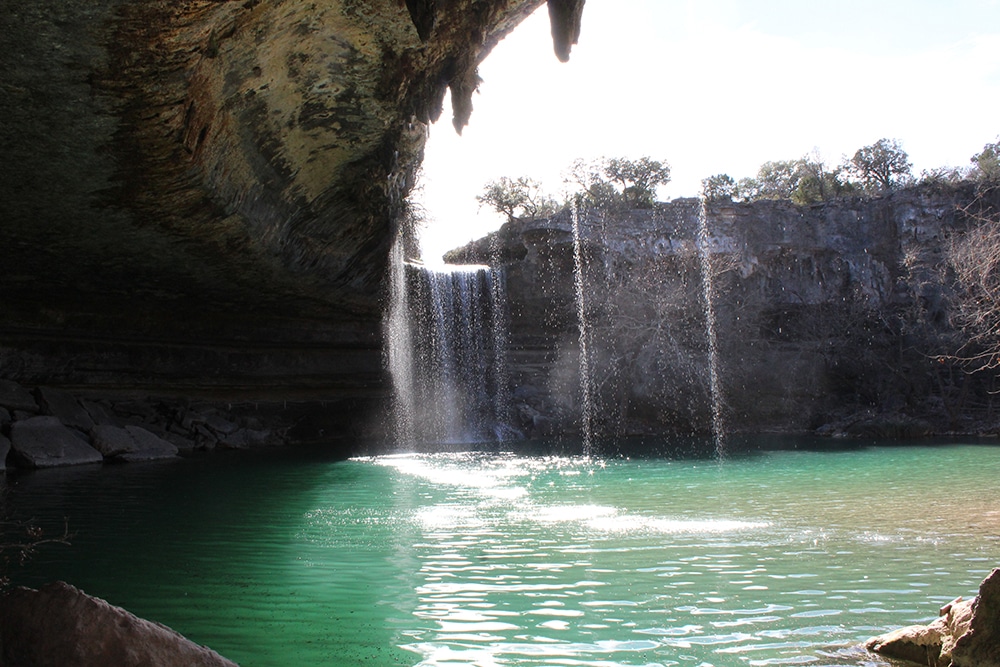 “Hamilton Pool Preserve is a natural pool that was created when the dome of an underground river collapsed due to massive erosion thousands of years ago. The pool is located about 23 miles west of Austin, Texas off Highway 71. Since the 1960s, Hamilton Pool has been a popular summer swimming spot for Austin visitors and residents. Hamilton Pool Preserve consists of 232 acres of protected natural habitat featuring a jade green pool into which a 50-foot waterfall flows.