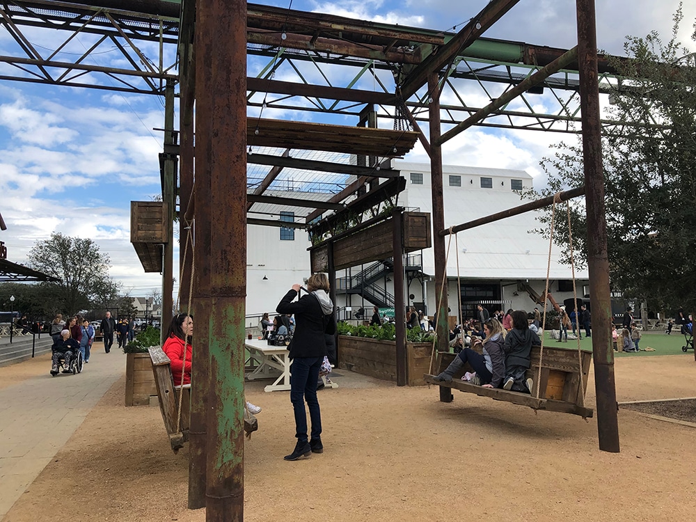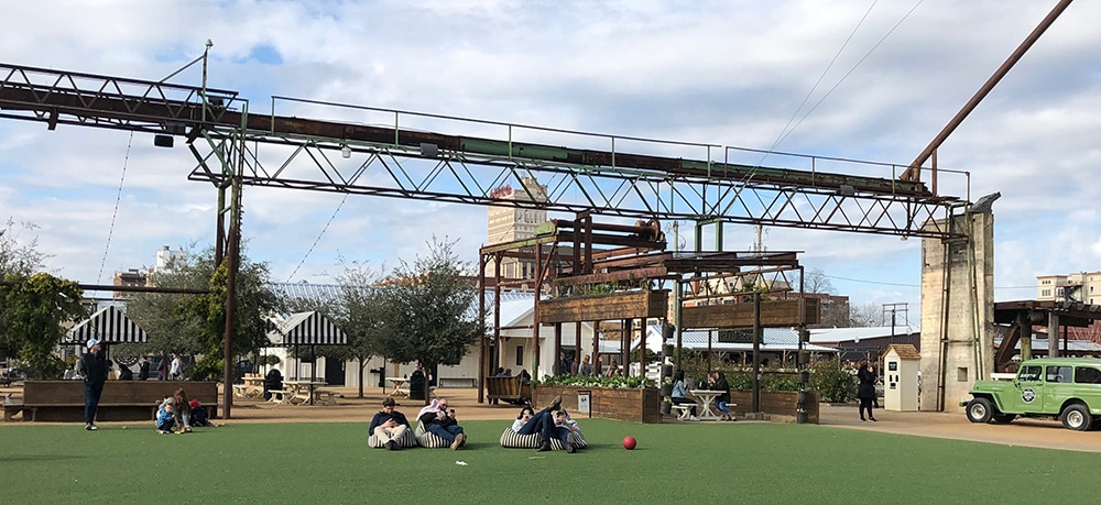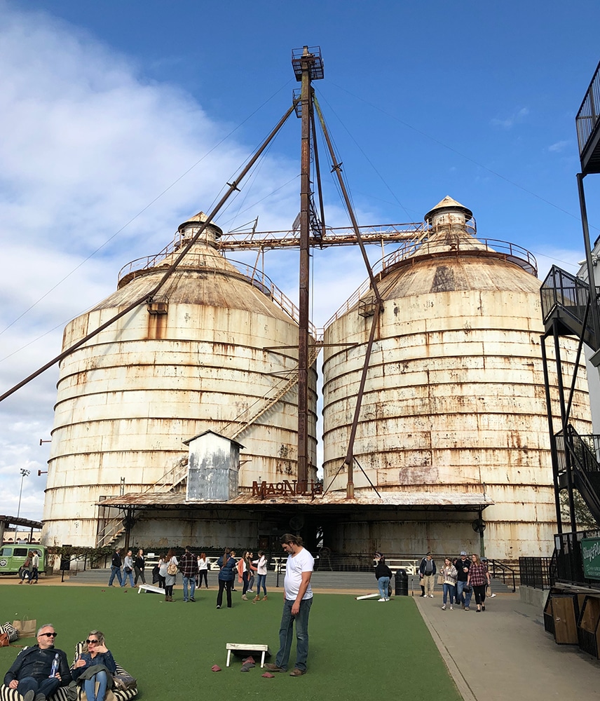 Magnolia Market at the Silos has a fantastic campus for relaxing in the sunshine. I’m not sure that Joanna designed the awesome beanbag chairs in the photo below (that match the awnings on the buildings behind them) for checking Facebook or emails, but everyone of the occupants seemed to think so.