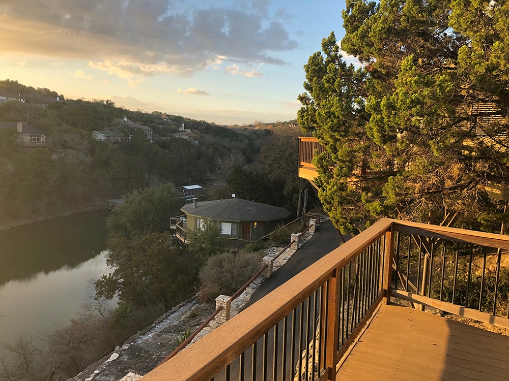 Our next destination was a week at the Texas Timeshares in Lakeway, Texas. These are octagonal houses dangling off the hillside over the Colorado River, but not THE Colorado River!