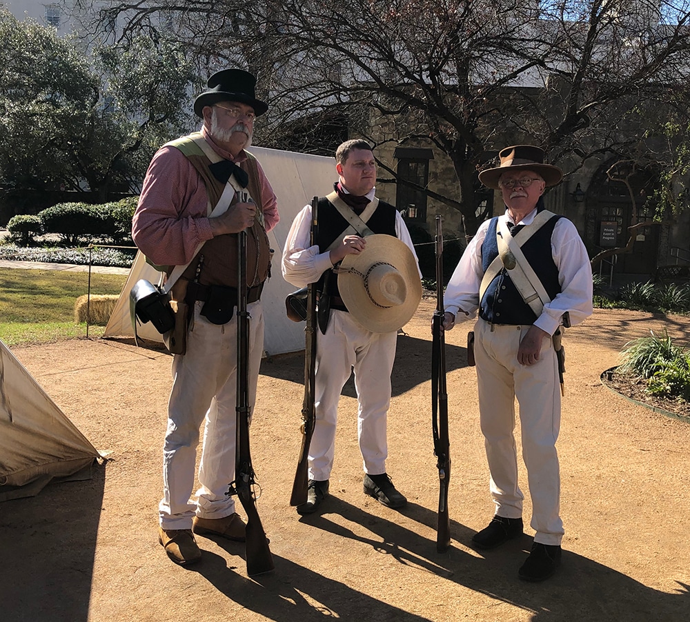 We were greeted by three gentlemen dressed in 1830s fashion who could answer questions regarding weapons, accommodations, clothing or just about anything else that comes to mind. There is a museum and throughout the campus are stations with lots of info about the Alamo.