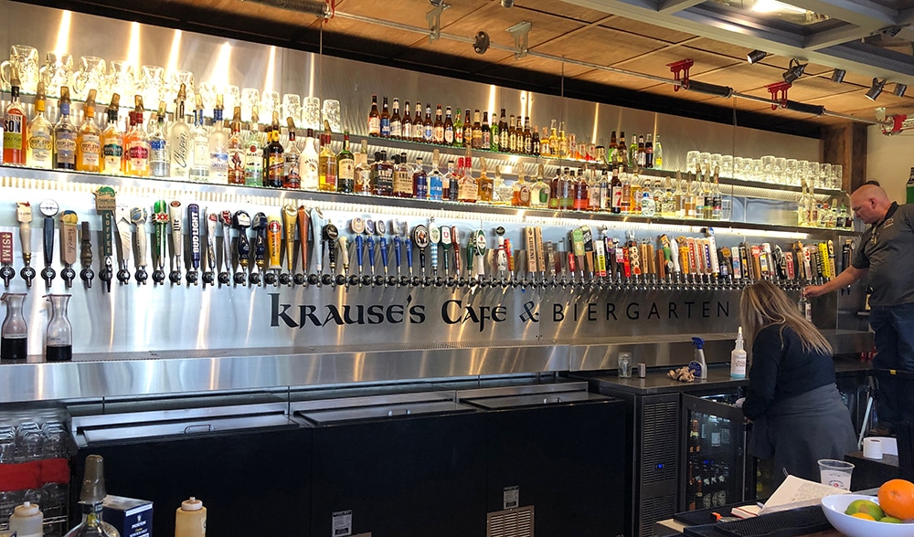 Across the street was Krause’s Biergarten and Cafe, a pretty cool place that celebrates its German heritage with so many beverage choices, it was difficult to make up our minds. We both ended up with something local.