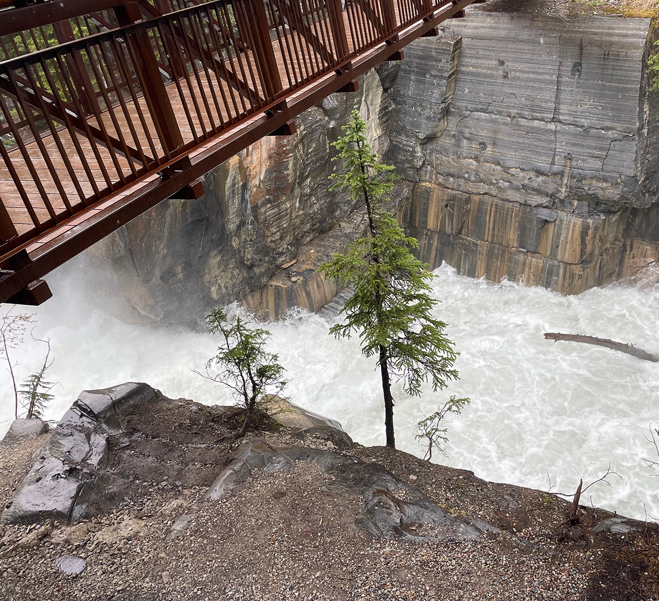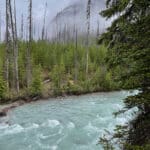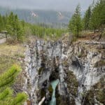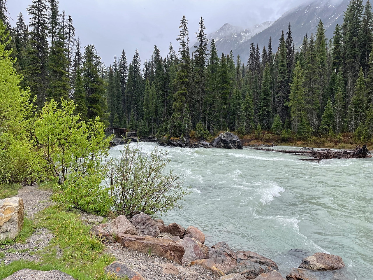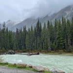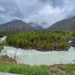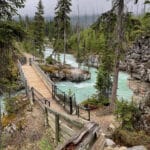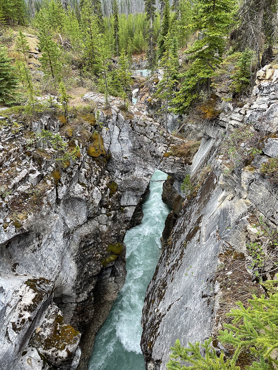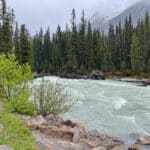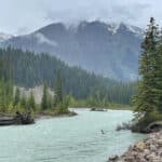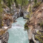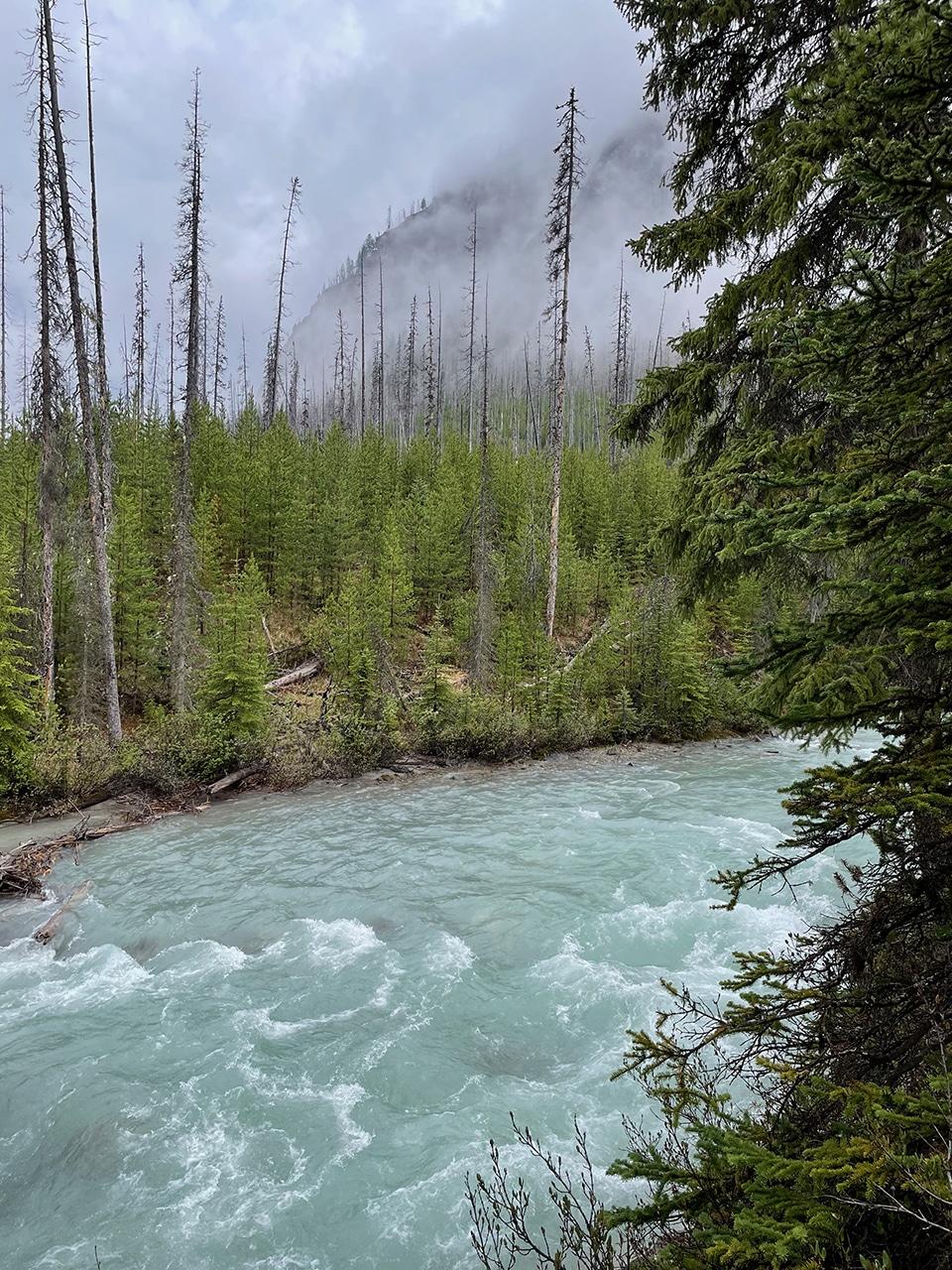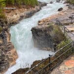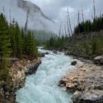 Also in Kootenay National Park, Numa Falls is located along the Banff-Windermere Highway (Kootenay Highway). The falls are easily accessed from a small parking lot and then a short and wonderful walk along the glacially fed Vermilion River. You can spot glacially fed lakes and rivers by their lovely bluish-green waters. Since there’s not a lot of sun today, the water is almost milky.