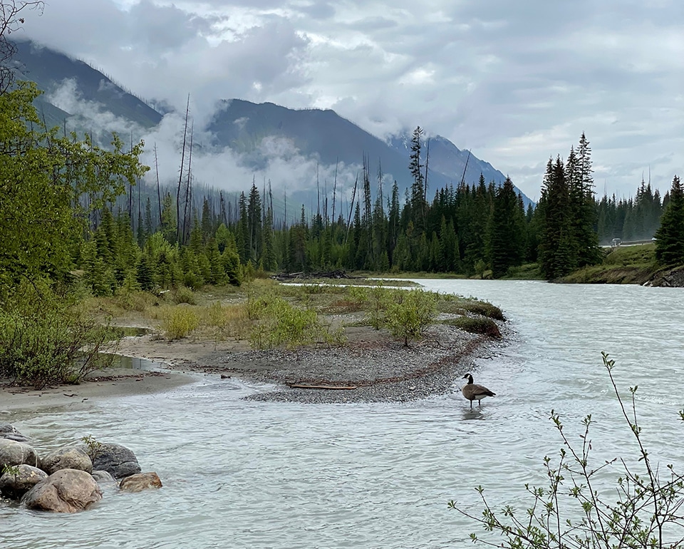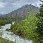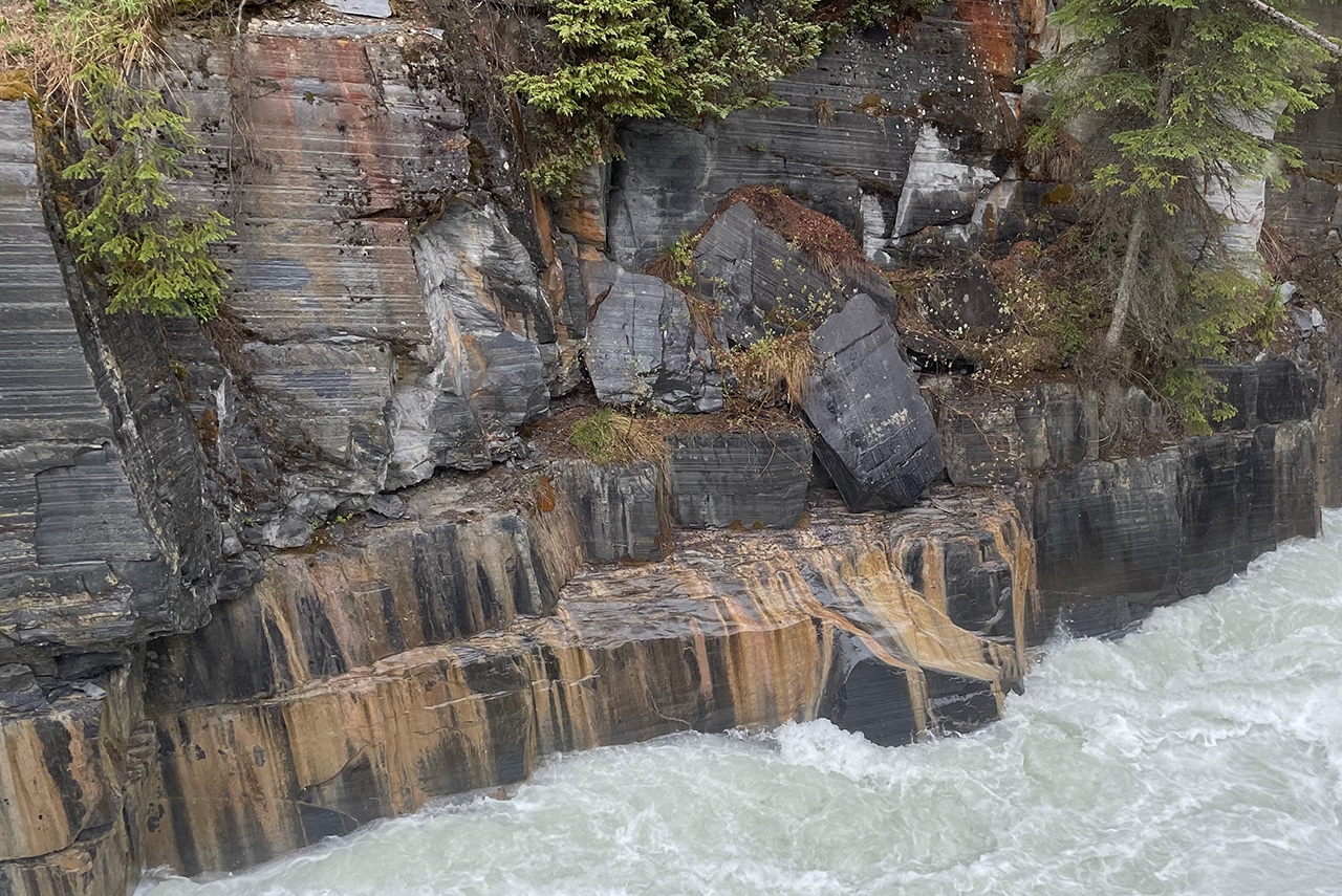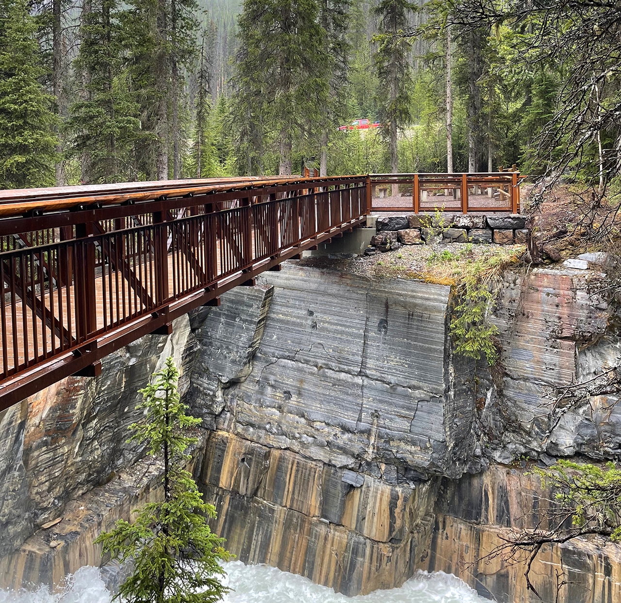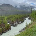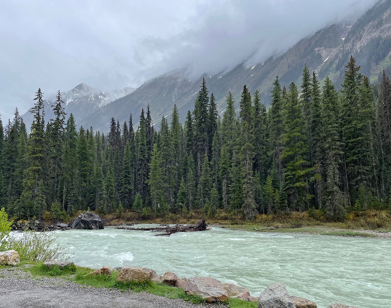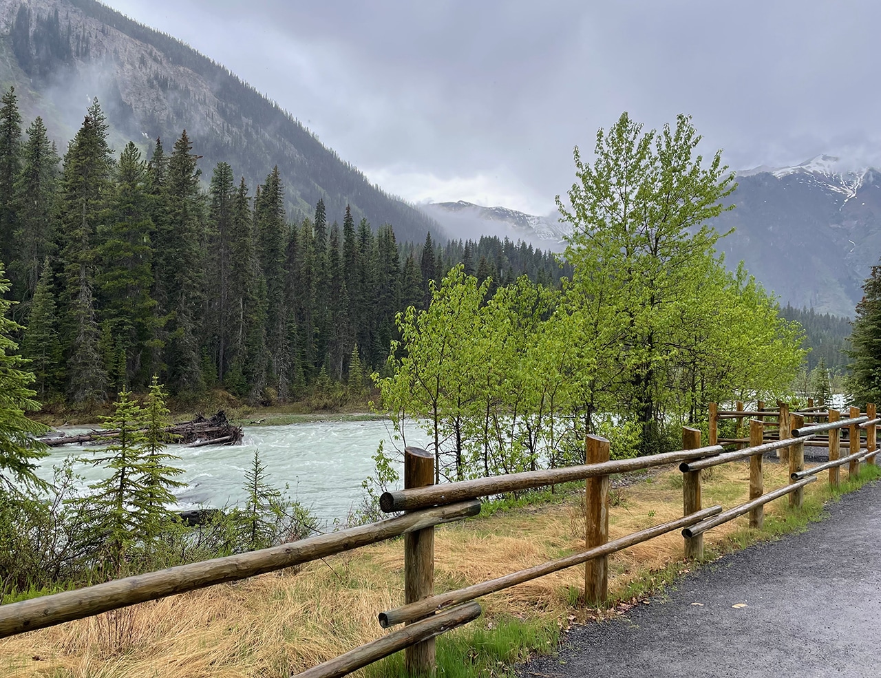 Also in Kootenay National Park, Numa Falls is located along the Banff-Windermere Highway (Kootenay Highway). The falls are easily accessed from a small parking lot and then a short and wonderful walk along the glacially fed Vermilion River. You can spot glacially fed lakes and rivers by their lovely bluish-green waters. Since there’s not a lot of sun today, the water is almost milky.
