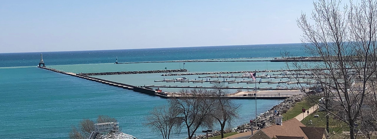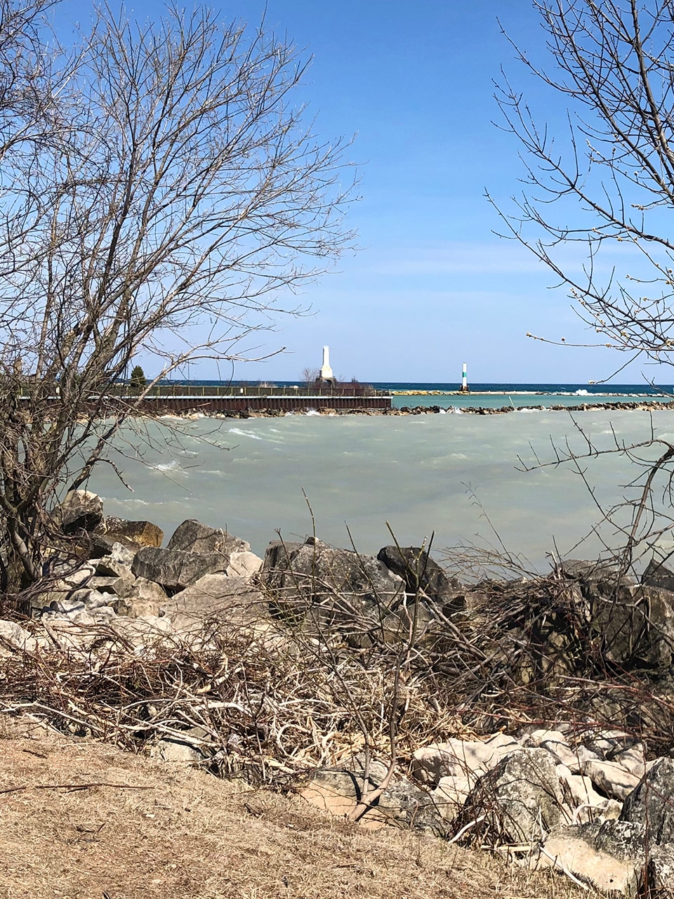 We spent several hours yesterday afternoon venturing out during the COVID lockdown to get some fresh air. We were looking forward to a little sunshine, since it was the first time since we’ve been home that we were to top 60 degrees. We went into a wide open space where (maybe) two dozen people had the same idea, and even though Lake Michigan was the most beautiful shades of blue I had ever seen on that great lake, the 25-mile-an-hour wind made it pretty uncomfortable. Even though we only made one quick swoop around the park, it was an outing nonetheless and much appreciated. We called in a curbside pickup so we could bring home some lunch.