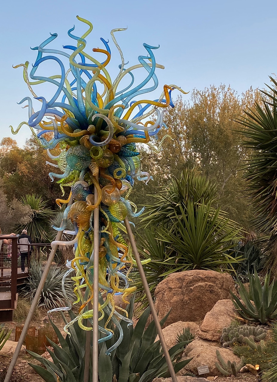 By now you may have seen at least one of my trips to the Desert Botanical Garden in Phoenix and clearly you know how much I love the desert. By now you know how Dale Chihuly‘s glass moves me, especially when light flows through it. And by now you know how important family is to us and how on our road trips we’ll swerve a bit to steer our path close enough for a visit. So, rather than ramble on about all those things, I’ll get right to the point of this post – to show you the pictures!