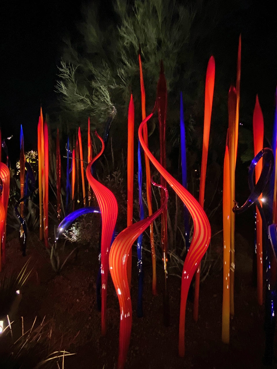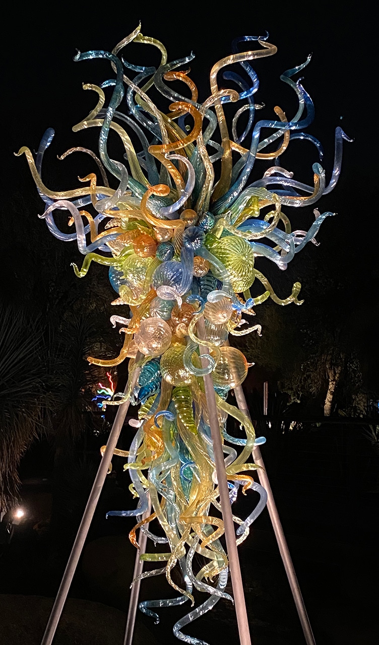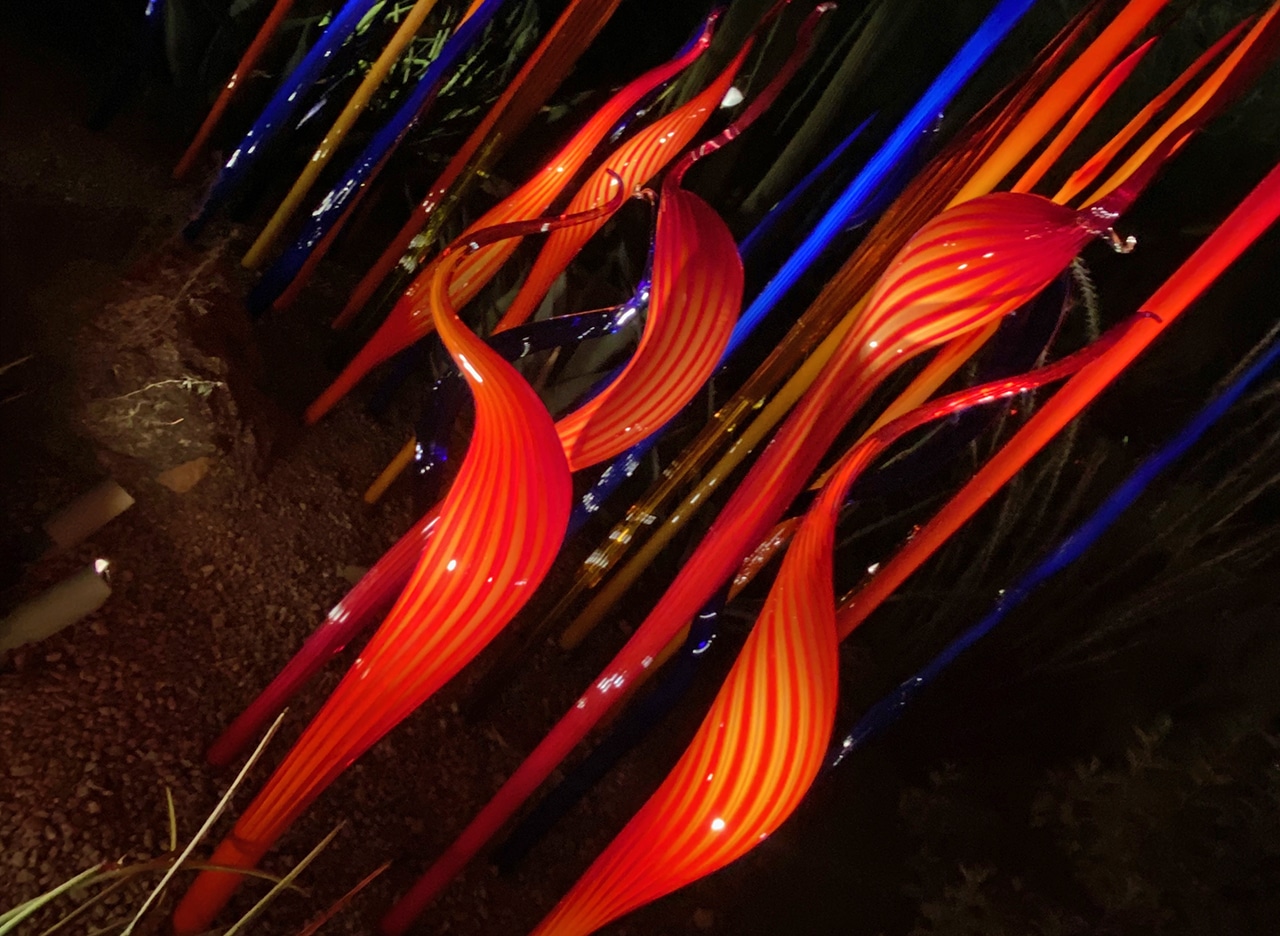 A few of my favorite things converged on one lovely evening while we were here – the transition from day to night, a fabulous botanical garden, a stunning blown glass expedition, and family.