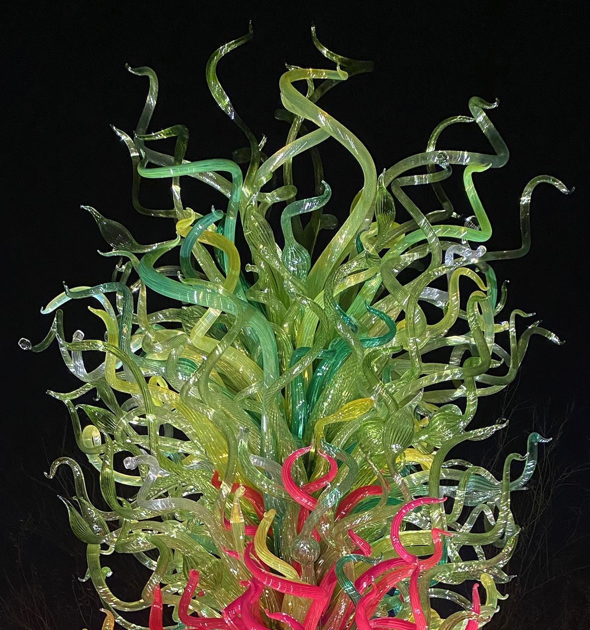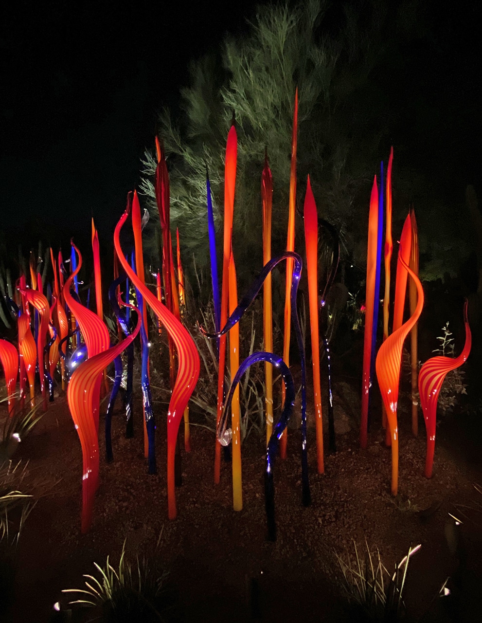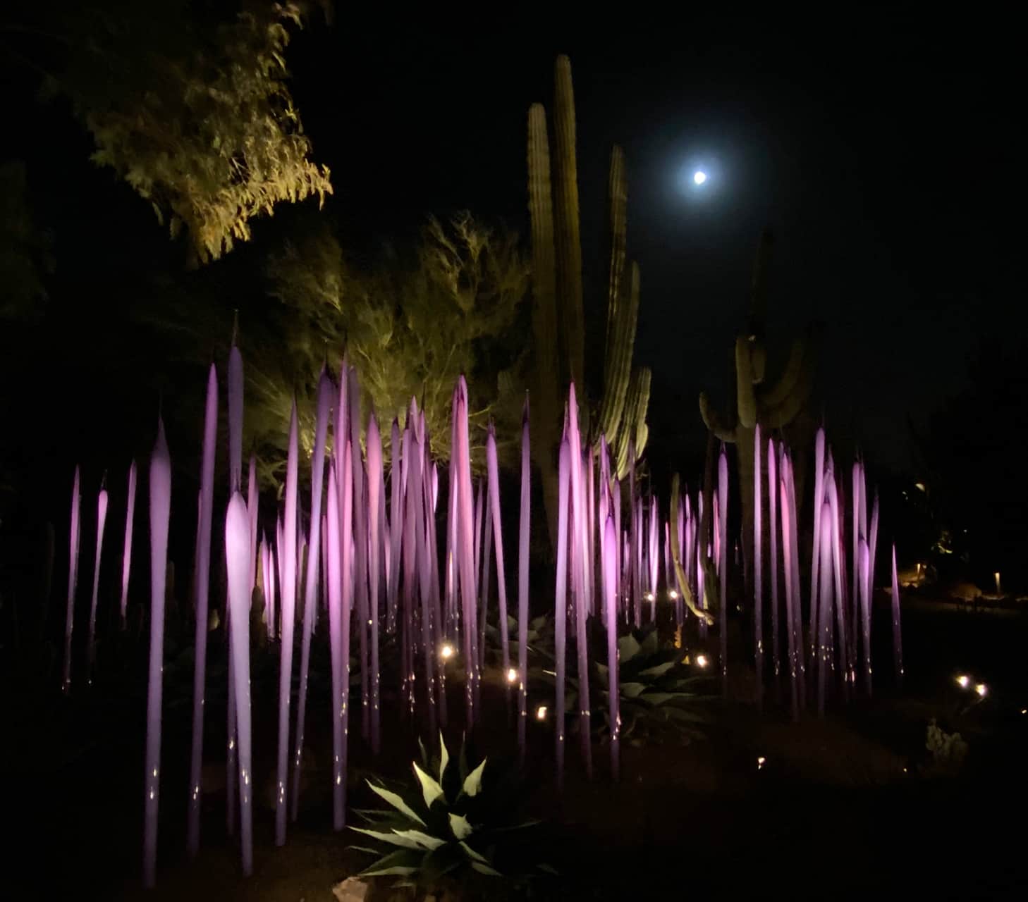 A few of my favorite things converged on one lovely evening while we were here – the transition from day to night, a fabulous botanical garden, a stunning blown glass expedition, and family.