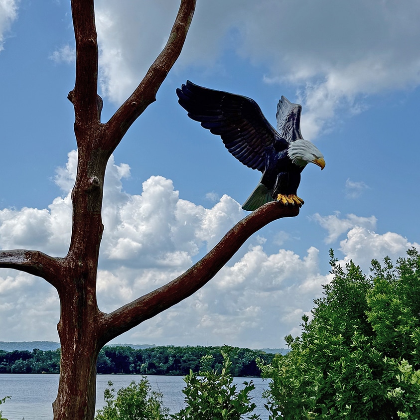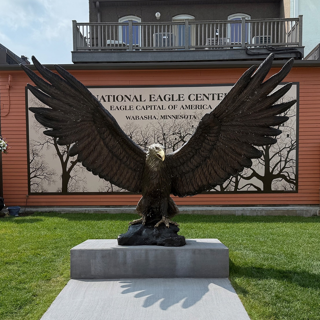 Redwing, MN (1 night) Country Inn & Suites by Radisson. On the road to Red Wing, we saw Kaposia Landing, Rock Island Swing Bridge, and two riverfront parks. Prescott’s Riverfront included a historic lift bridge, a draw bridge, and a bald eagle adorned with silverware! We stopped at Freedom Park and listened to the music in Hager City before arriving in Red Wing. Great views at Memorial and Bay Point Parks, a stop at the Redwing Brewery and its train depot finished up this long, but wonderful day!
