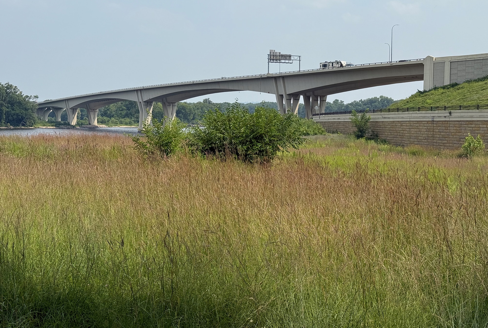 We were coming up on our turn-around point and that happened to be the I-90 Dresbach Bridge we visited yesterday. Today we had a great vantage point that you can’t get from the Welcome Center! That’s where they said they wouldn’t be able to go much further because of the construction, but we already knew that.