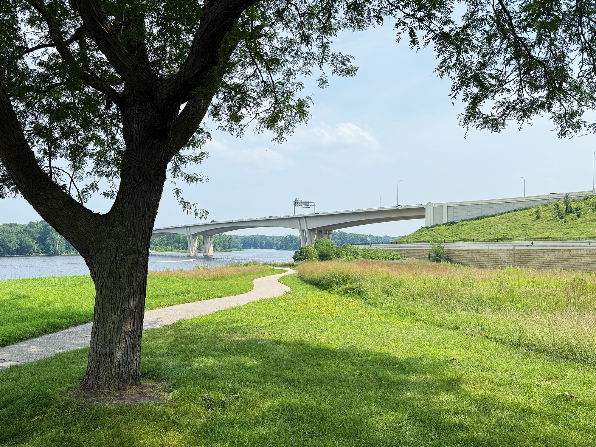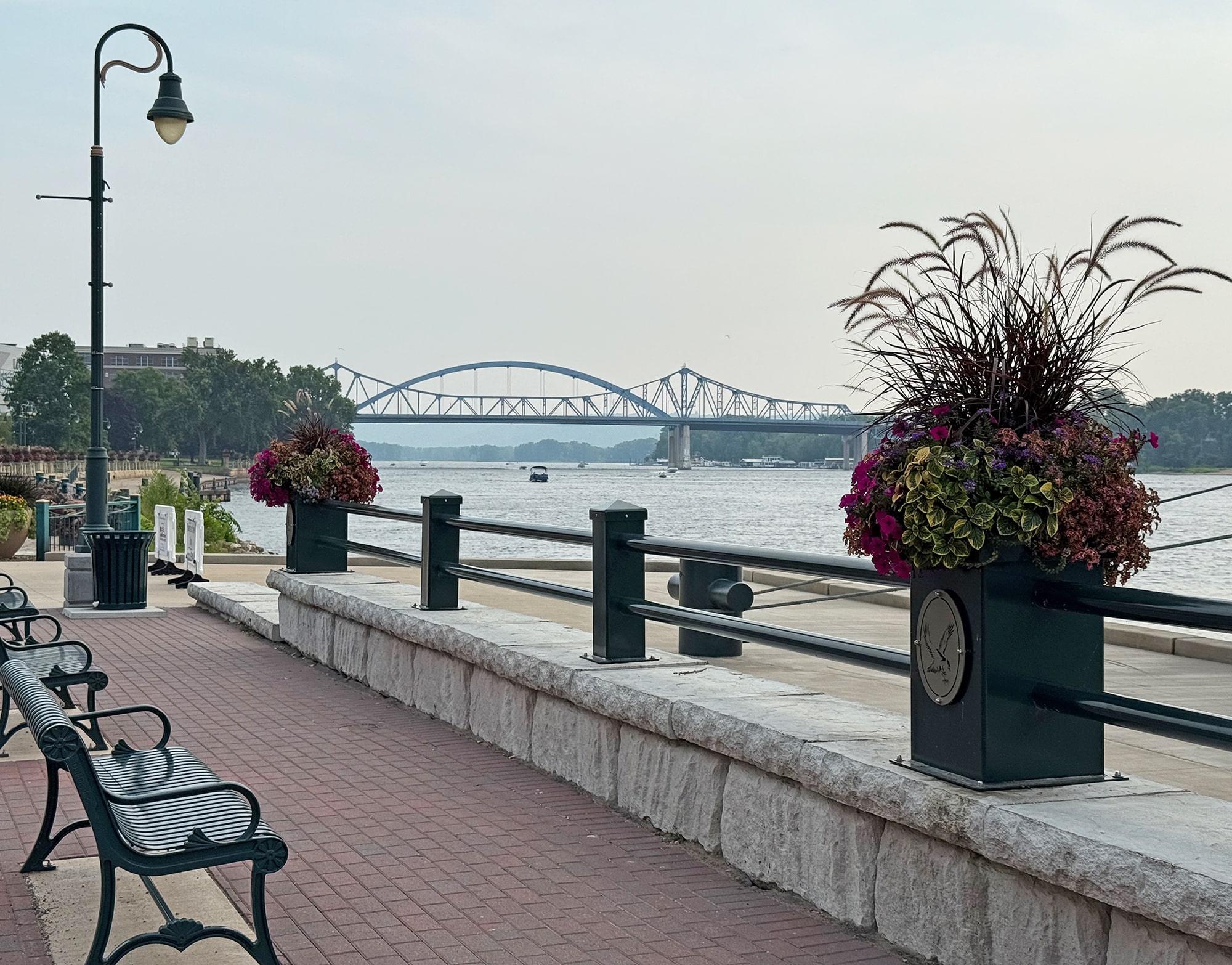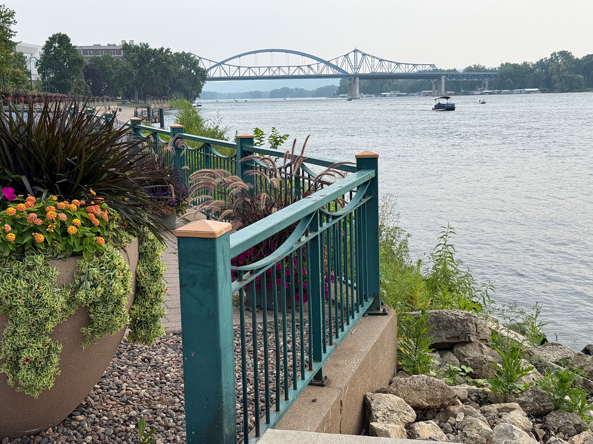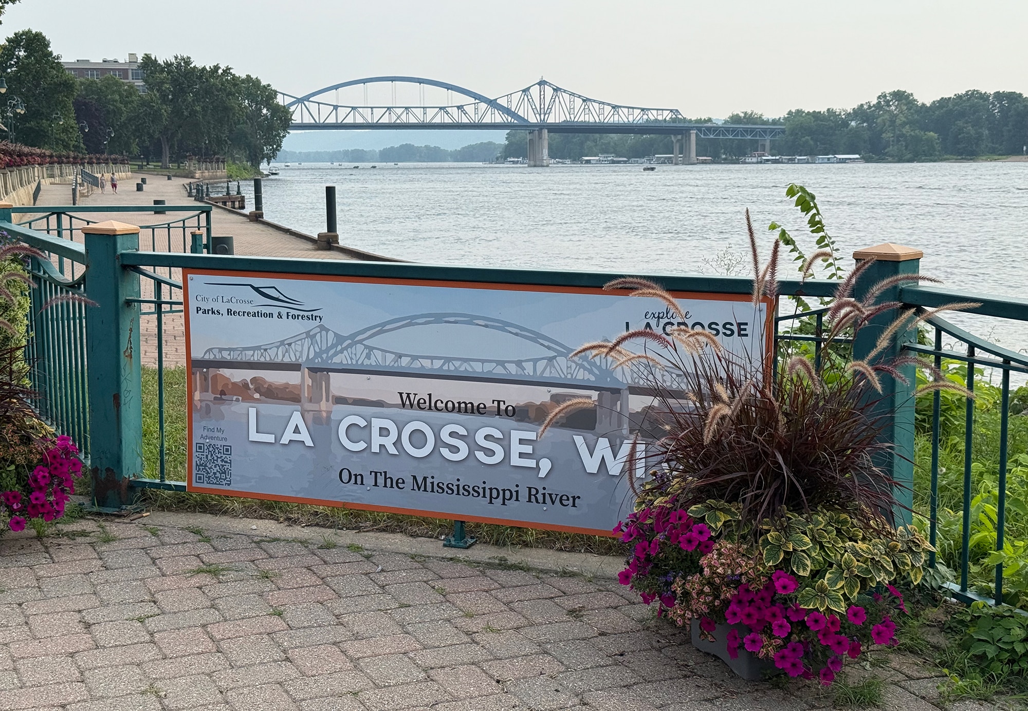 We opted for three nights at the Radisson Hotel, Harborview, and chose Two Queens over a usual King so we could get a river view. This was the perfect location for this trip, in (very) close proximity to the River and its fabulous Riverside Park, restaurants and the Turtle Stack Brewery! All of the photos below were taken on quick walks from our hotel. The beautiful bridge in the distance over the Mississippi is the I-90 ALT bridge and we’ll explore that a LOT closer-up on a later stop.
