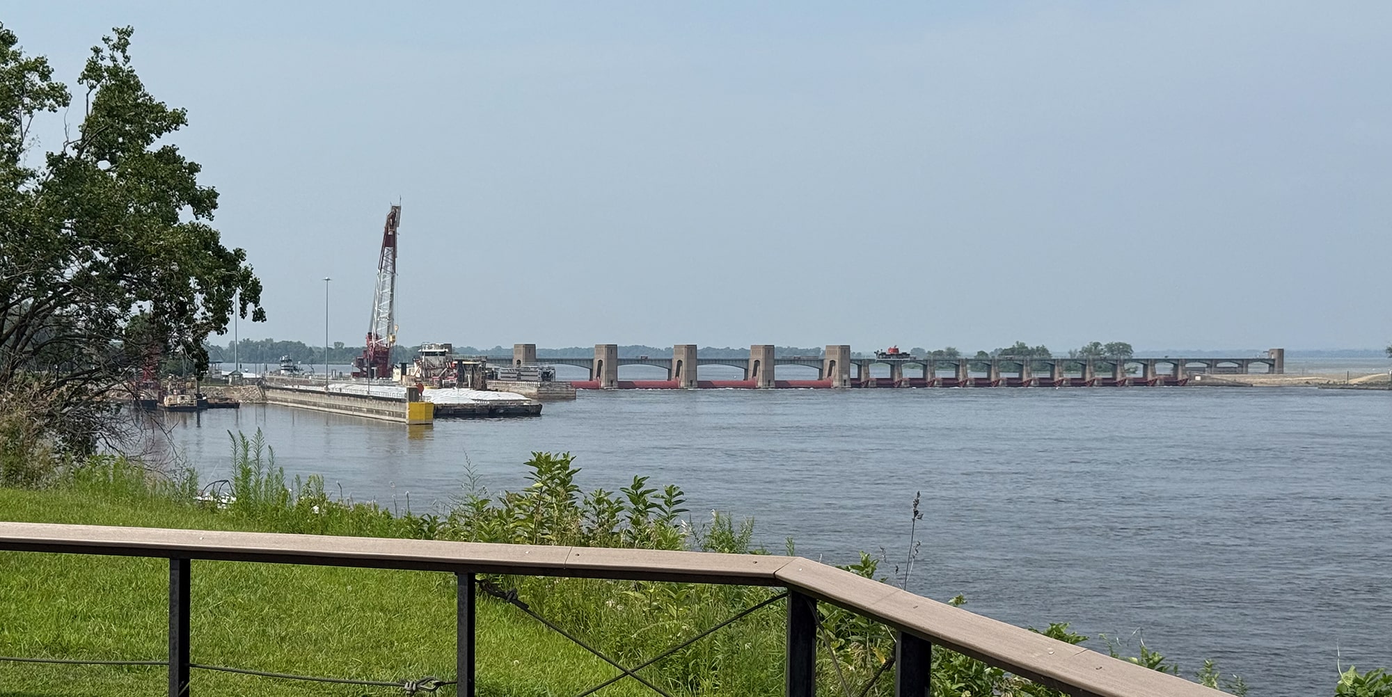 Our first stop is the Dresbach Welcome Center just across the Dresbach Bridge (I-90). Unfortunately, our first turn to get a close-up of Lock and Dam #7 was closed due to construction, so the last photo below is the best I can do on this trip.