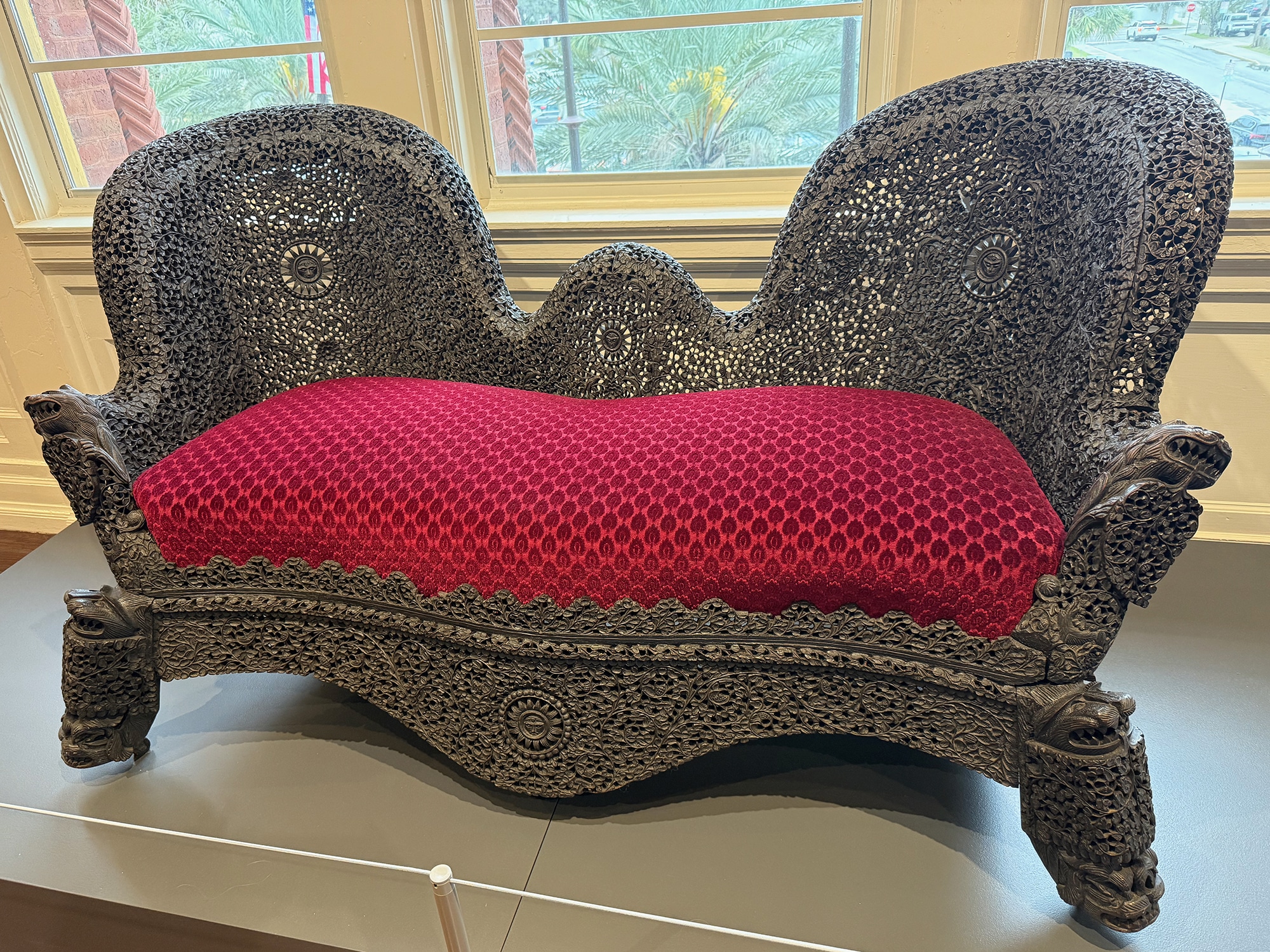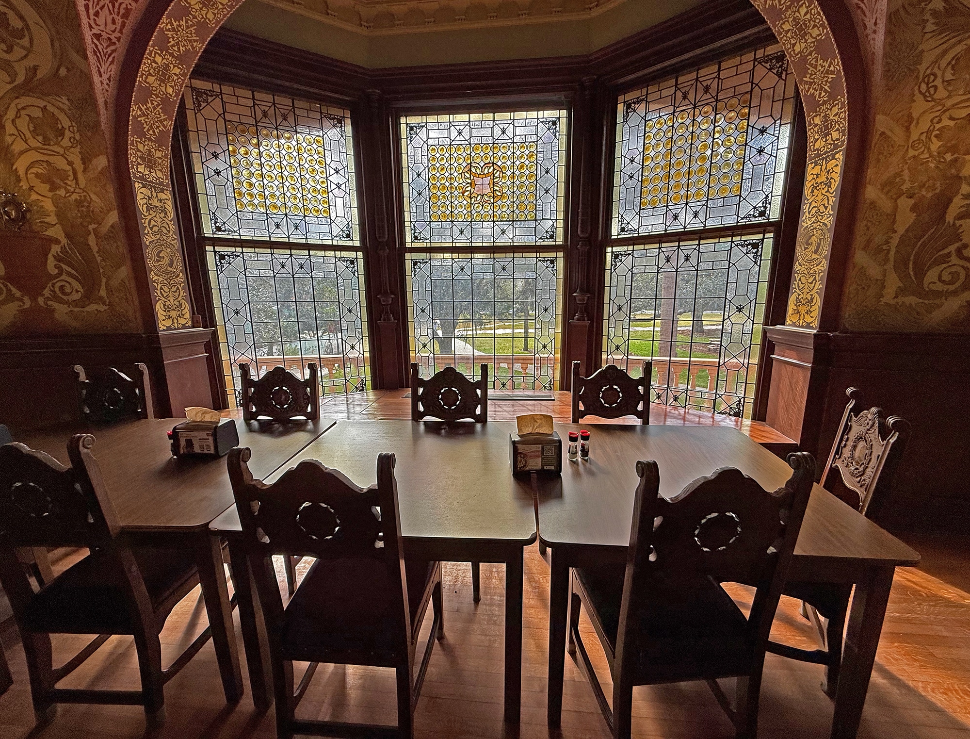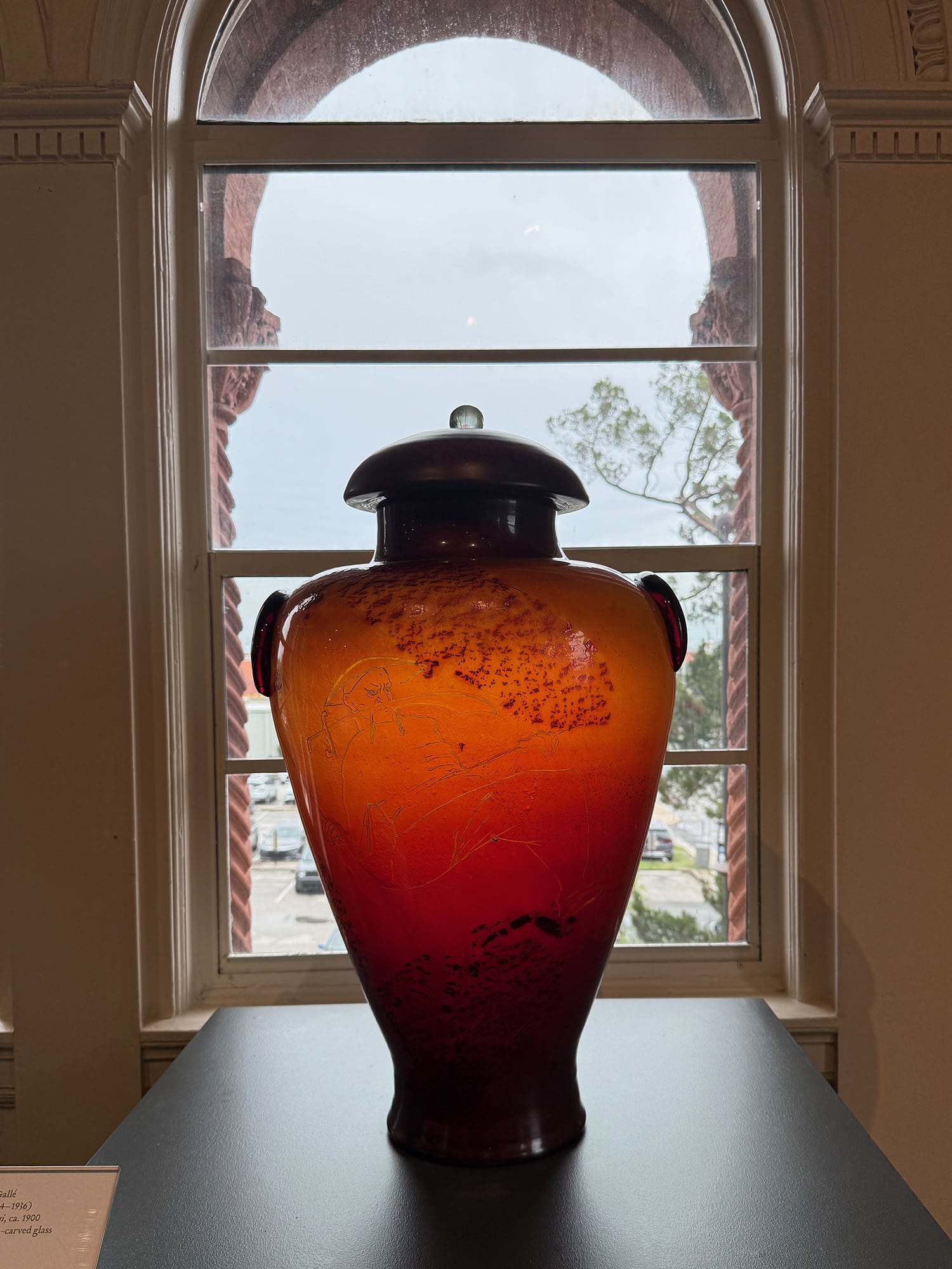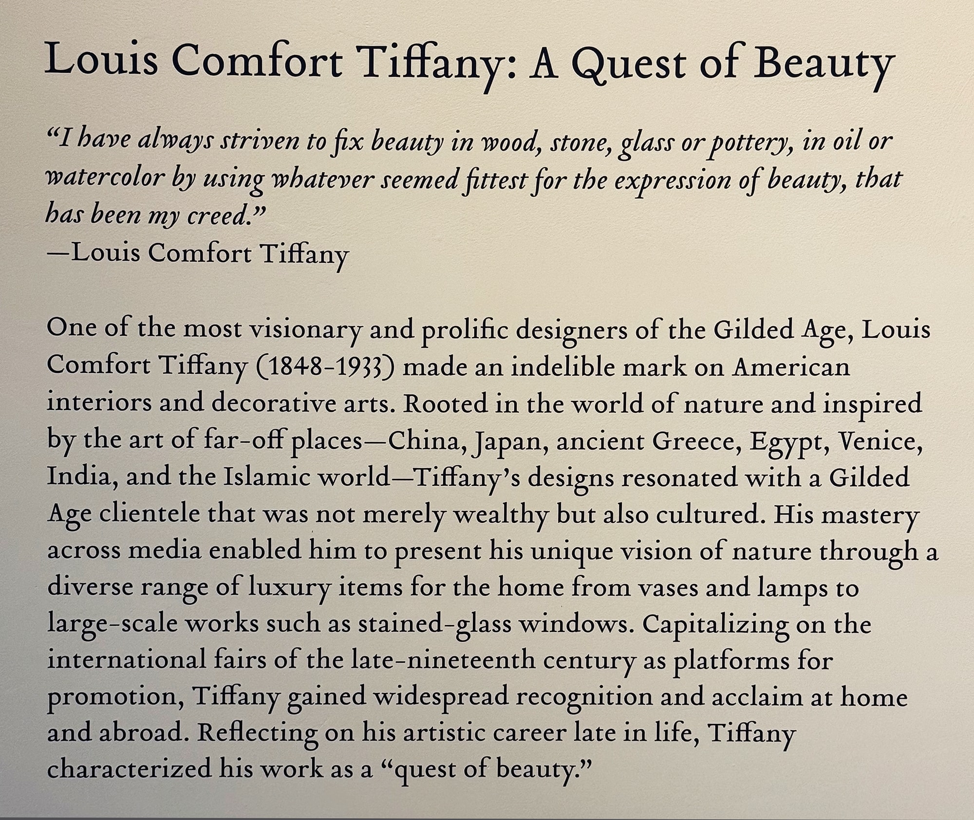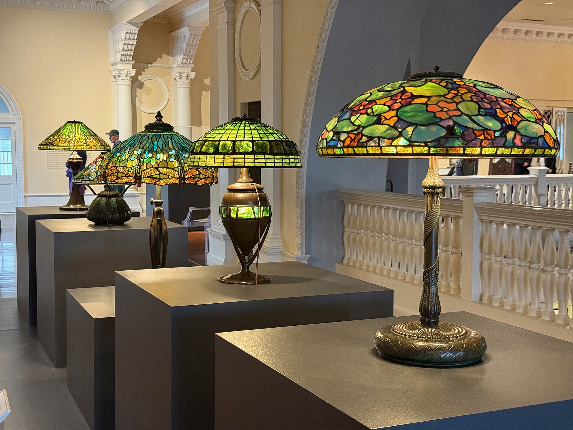 From Tiffany’s Chapel at the Morse Museum in Winter Park (Laid Back in Orlando), the fabulous stained glass windows of Flagler College above, to this beautiful display at the Lightner – we have certainly seen a lot of works by Louis Comfort Tiffany on this trip! Yes, I do know how lucky we are!