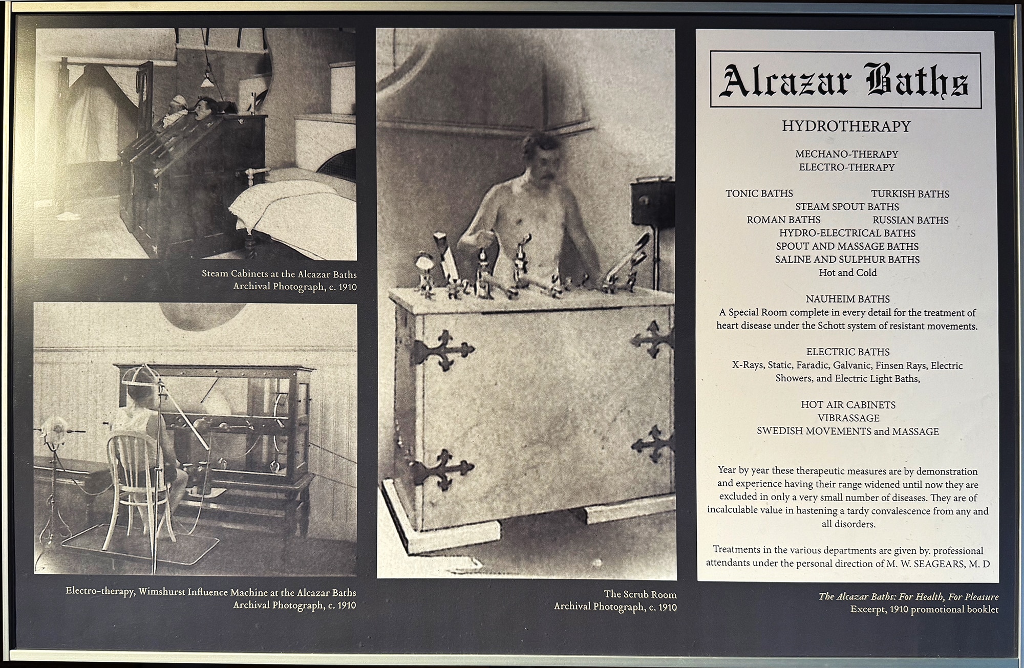 The first two photos below were just two of the photos by William Henry Jackson that adorn a long hallway at the Lightner Museum. For more information on William Jackson, check out this link. He played a major role in shaping public perception of the American West and was instrumental in swaying the congressional vote to establish Yellowstone National Park in 1872. The others were random photos I took of the exhibitions, including the Riding High exhibit, some of the original hotel components and information about the old spa.
