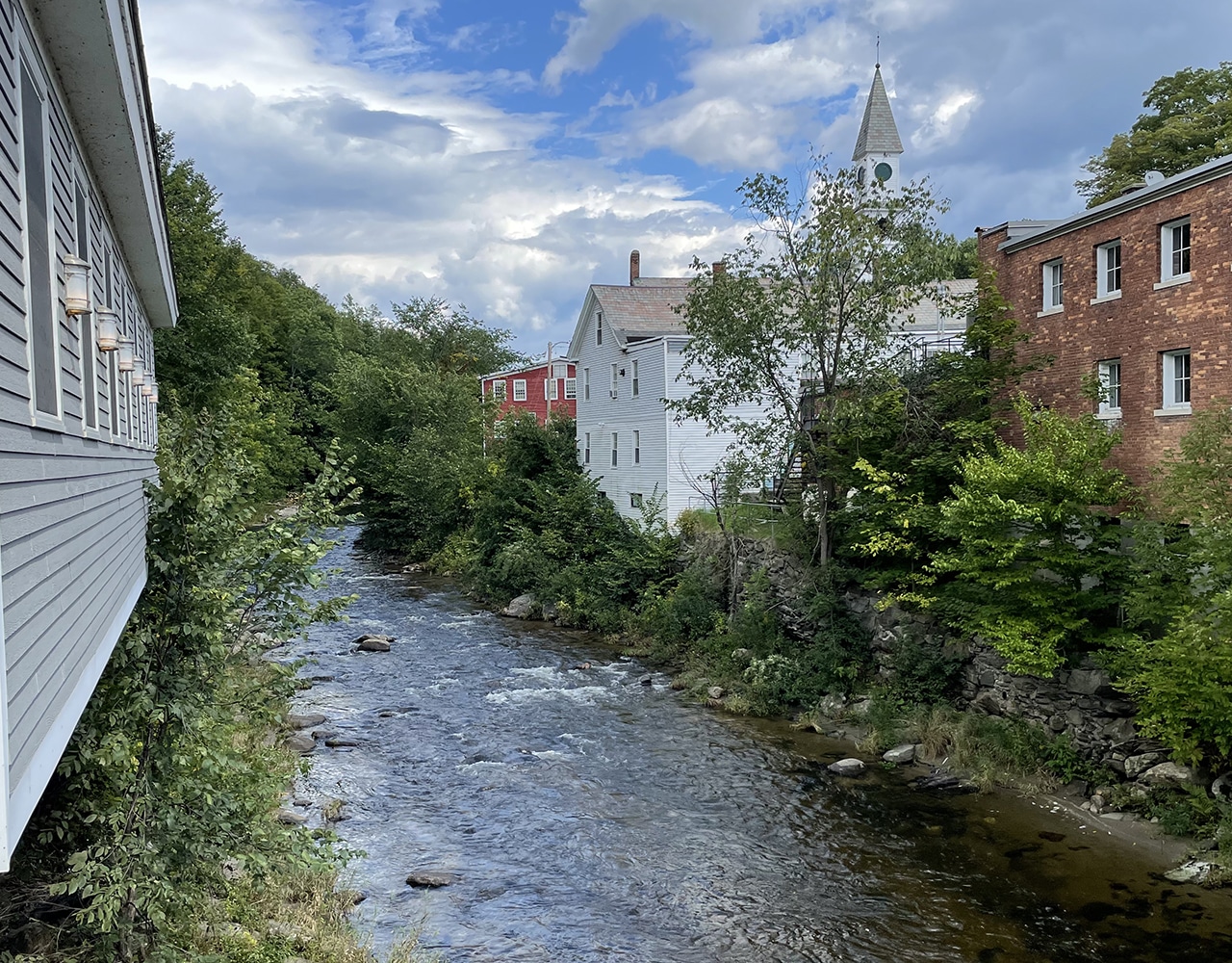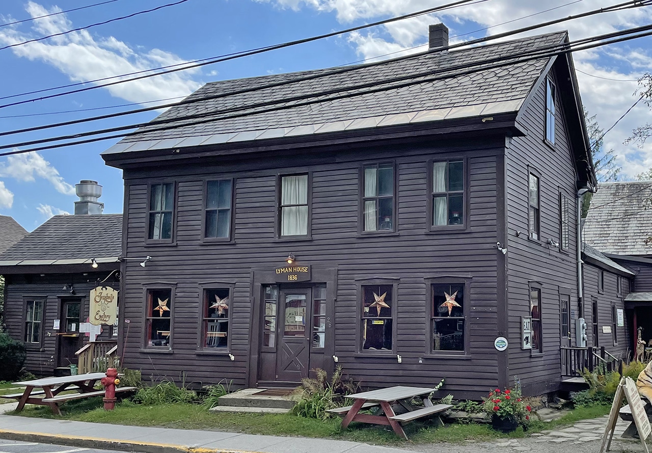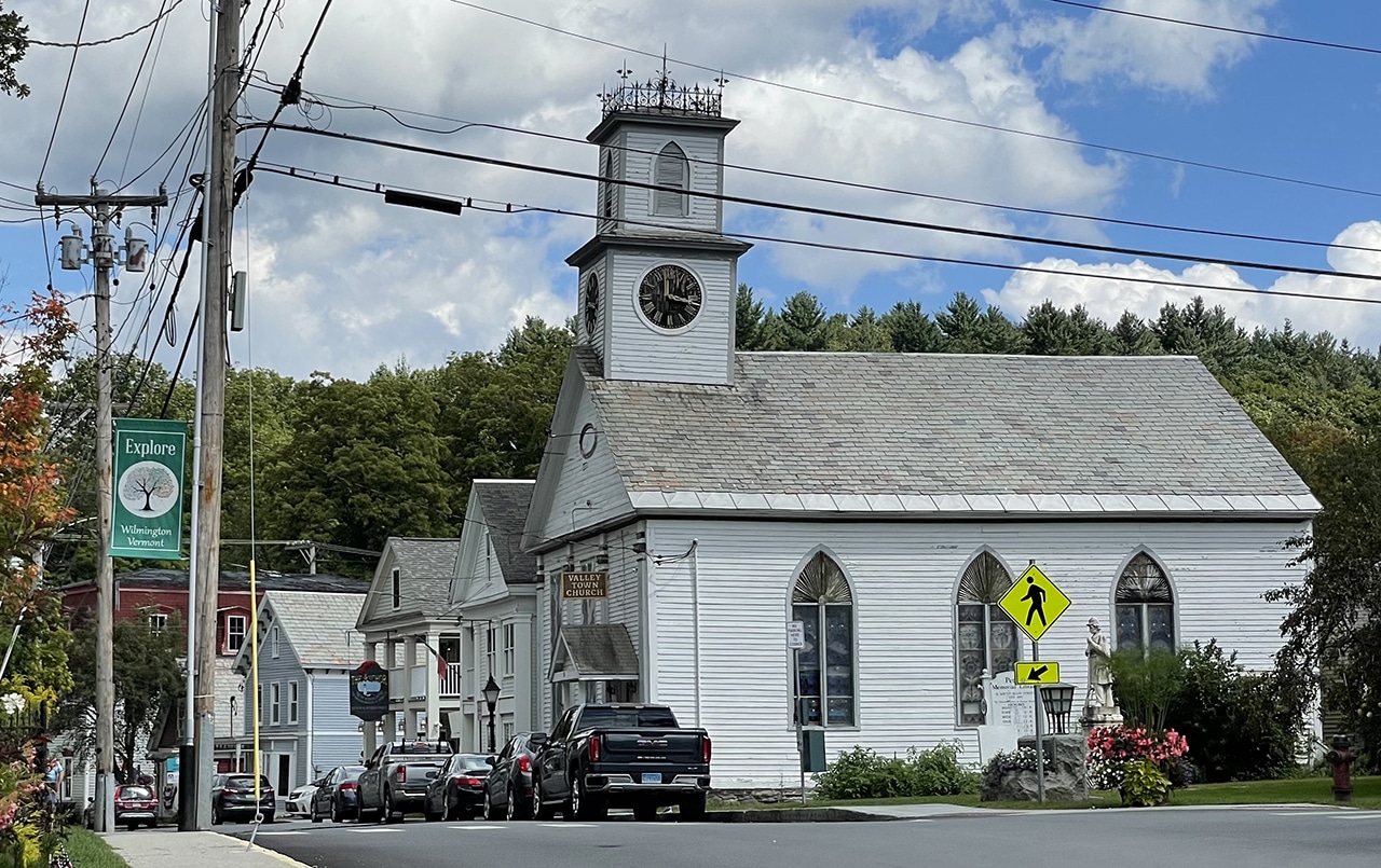 “Founded in 1751 on land granted by Banning Wentworth – provincial governor of New Hampshire – Wilmington’s original settlement was on Lisle Hill, northeast of today’s town center. But in 1833 town leaders moved [eight buildings] into the valley, with better access to the Deerfield River and closer to the sawmill at the foot of the hill. Known as “Mill Hollow,” the new town center was on the Windham County Turnpike (today’s Route 9), which linked Brattleboro and Bennington. Commerce generated by this road attracted new business and residents.”
