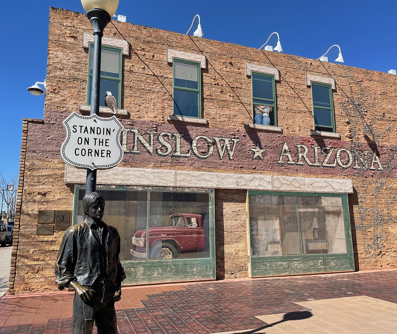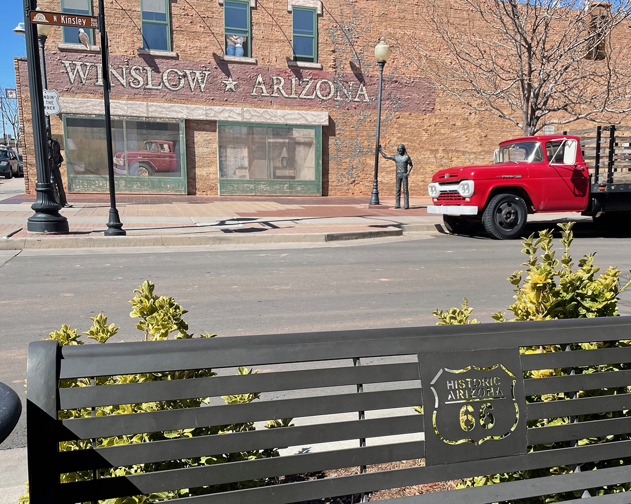 Although it’s pretty unusual for us, we took the direct route to our hotel for the next two nights, right up I17 and east on I40. It ended up being perfect timing for a stop in Winslow to stand on the corner one more time, get Jim a new t-shirt, and grab some lunch. We remembered from previous visits the lack of restaurants to choose from, so when we noticed the awesome OTG (Olde Town Grill) we immediately pulled over. Jim had a great Rueben and I had the Mango Habenaro Chicken Wrap which was OMG! fabulous. We will be stopping there again!