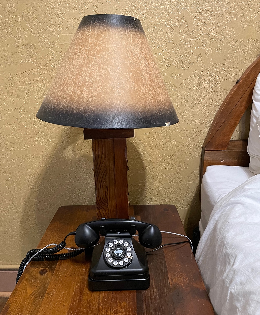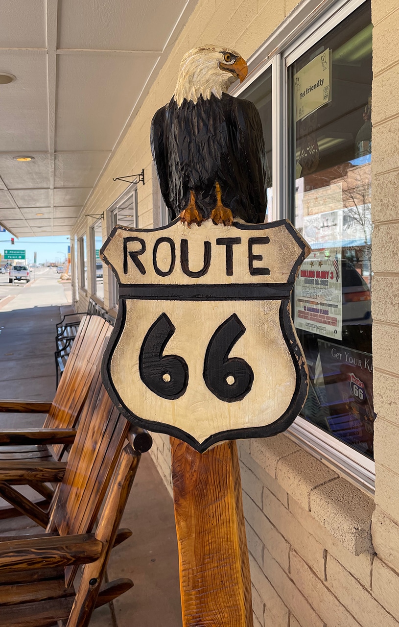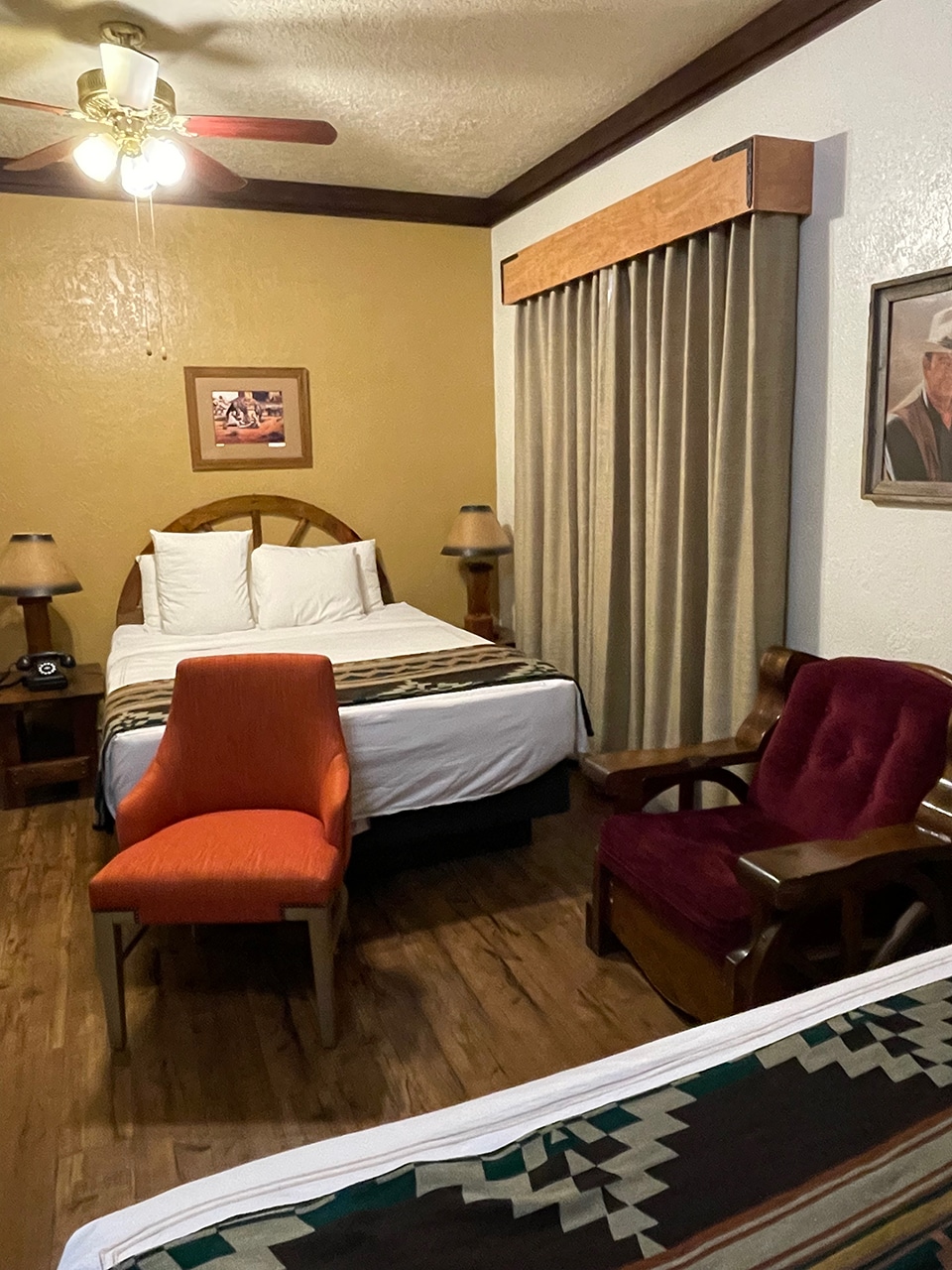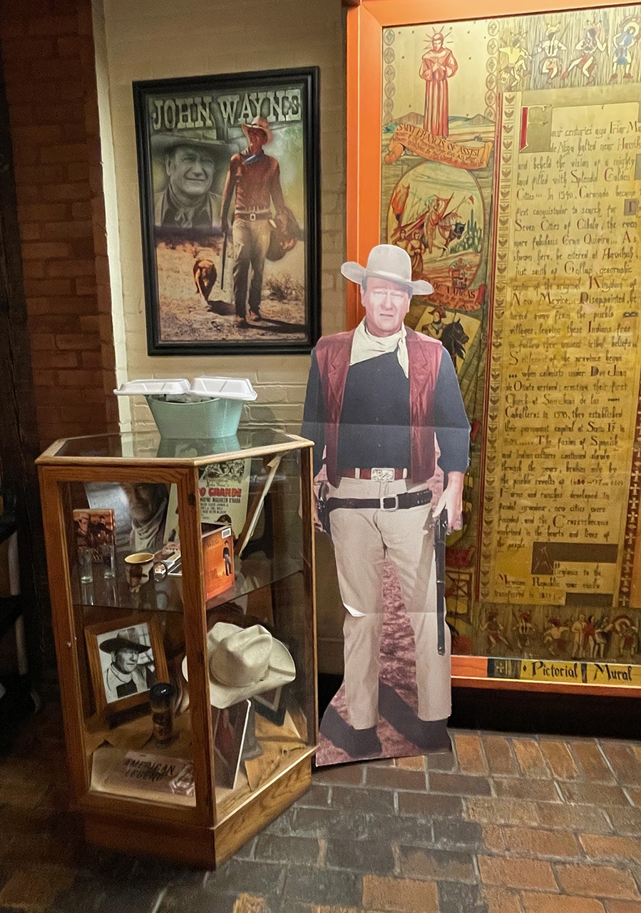 When we needed a stopover that was about a day’s drive from Peoria, we settled in on Gallup, NM at The Historic El Rancho Hotel. It seemed to be the most well-preserved and most interesting hotel – and it was right on Route 66. We ordered up a Deluxe Double and was booked into The John Wayne Room, which definitely had an “old west” vibe – although it was very clean and comfortable. A picture of The Duke hung front and center when we entered our room.