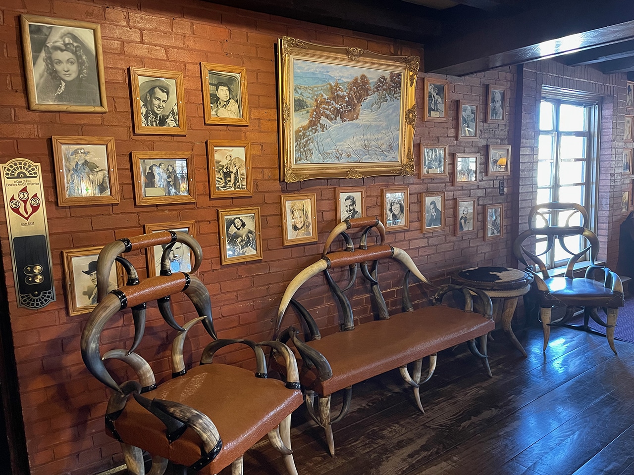 Beautiful southwestern art was painted on the walls in the hallway to our room, and others are interspersed throughout the lobby. Displays about famous old stars – like John Wayne (of course) – are all over the lobby, and the photos were fascinating (and plentiful) and some were signed!