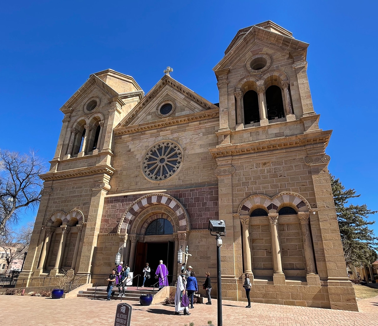 Since our casita got us close enough to walk, when we set out to find the Plaza, we found so much more!! Our first stop of the day, was the Cathedral Basilica of St. Francis of Assisi. We lucked out that it was actually open because today was Ash Wednesday. Turns out mass would be ending soon and we could get a peak inside.