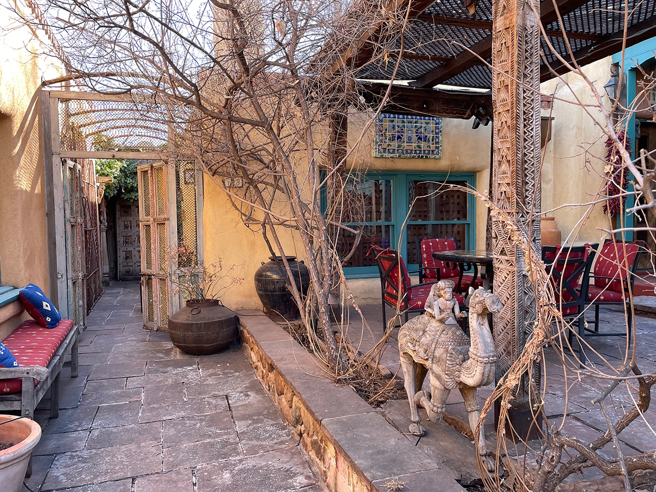Last time we were in Santa Fe we stayed at a hotel that was just too far away from where we really wanted to be. Besides looking like a war zone because of extensive construction, we had to travel through Santa Fe traffic whenever we went anywhere! Since we (sometimes) learn from our mistakes – a Historic Casita just steps from the historic district (VRBO) would be our home for the next three nights.