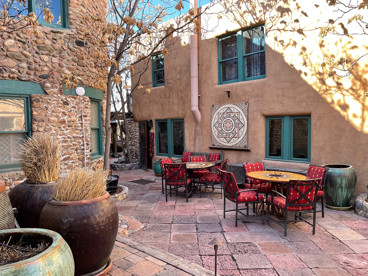 After checking out two more chapels that I talked about on our last visit, we had a great time snooping around The Inn of the Five Graces. We wandered thru the courtyards and would have loved to check out a room, but some work was being done and it was closed, or possibly not open yet for the season. Although very expensive, the pictures may sell you on a reason to celebrate something special (really special) here in Santa Fe!