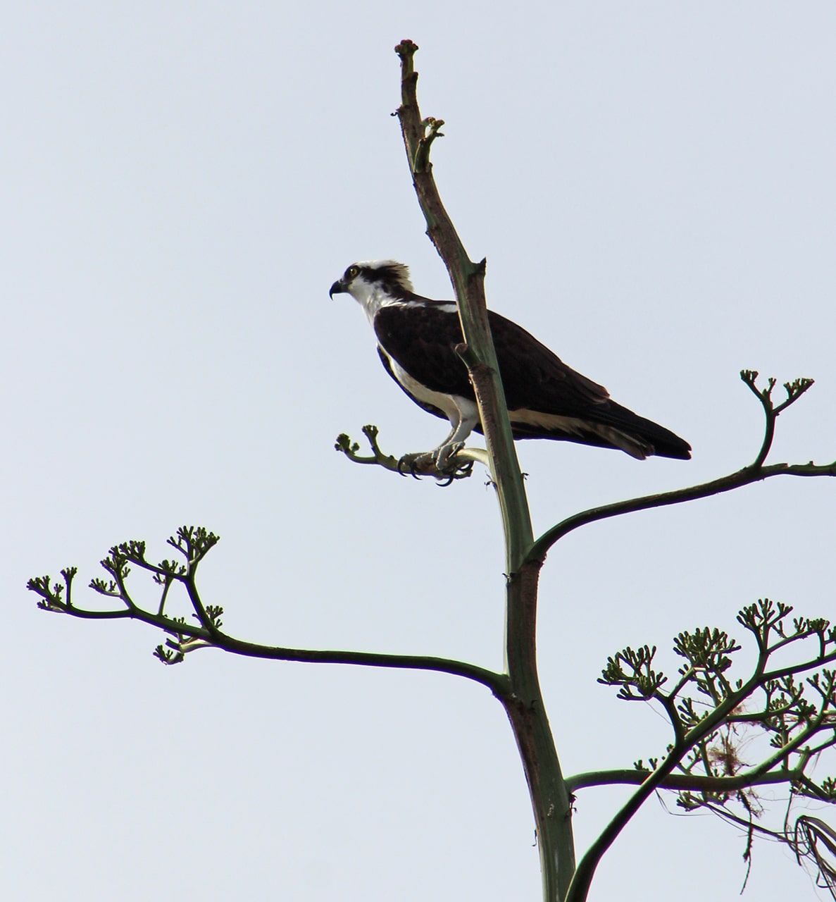 While I waited for Jim to finish up, I sat down on a bench and was blessed with the presence of an Osprey high up in a tree. Although he didn’t smile for the camera, he did sit there long enough for me and the camera to get a good look.