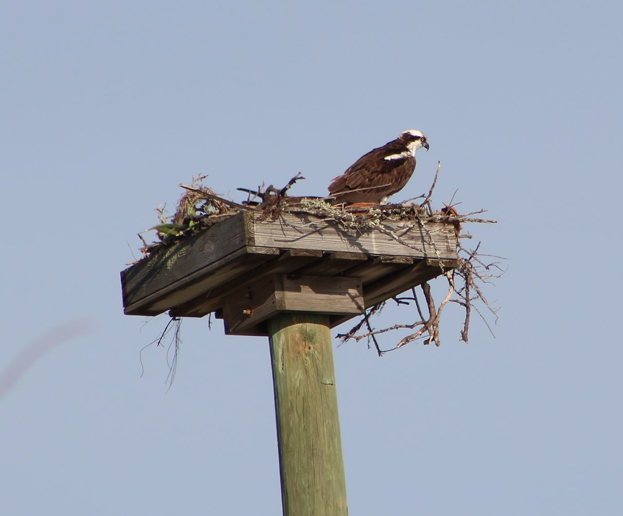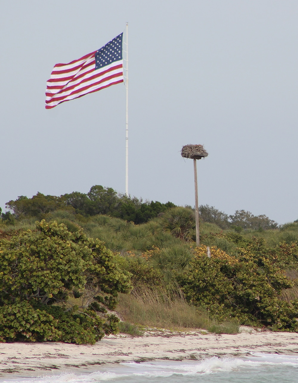 From that same vantage point, up the coast we could see a huge flag with a nest on a high pole and there was definitely movement. We drove up the coast a ways till we found that big flag and pulled over at a ranger station. I walked the path down toward the shore and got a pretty good view of another Osprey. What a fantastic day!