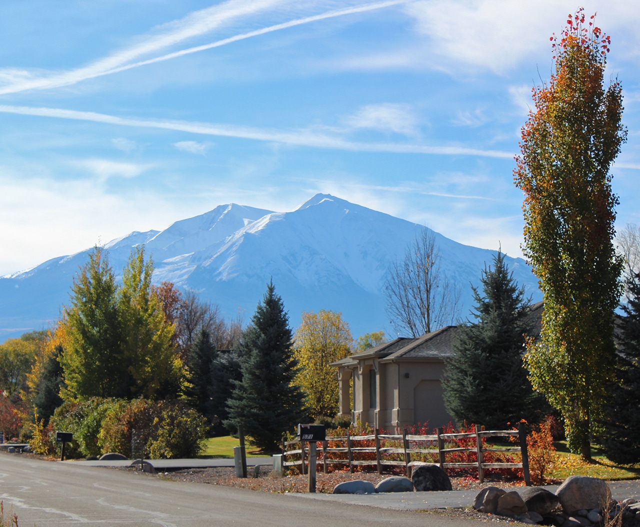 We did actually stop for the first picture on the left, since that was in a small town and the backdrop was a spectacular snow-capped mountain. I don’t think I would ever get tired of that view when I came home every night! The other picture below is just a random shot of the beauty of Colorado. Ahhh…