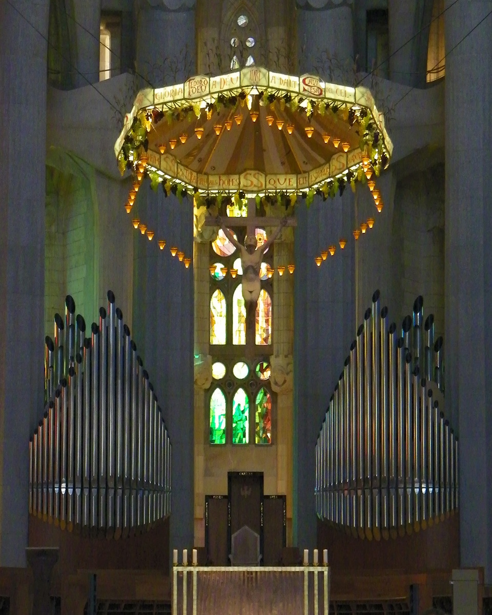The grand finale of our grand finale is the absolutely stunning crucifix that is suspended above the altar and the organ pipes. The whole experience was breathtaking and worth the price of the entire cruise to witness this fabulous place first-hand. I was hoping there would be a chance to return in 2026, but 2034 may be a stretch. One day Antoni Gaudi may finally rest in peace knowing his Sagrada Familia – his fabulous gift to the world – is complete.