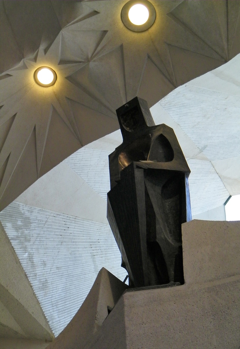 Its great doors at the Passion Façade entrance (pictured above), are printed with words from the Bible in various languages. Several words, including “Jesus” were meant to stand out. Josep Maria Subirachs, a Spanish sculptor and painter, made a plaster model of the doors that would then be cast in bronze. He also created the bronze statue of Saint George (pictured above right).