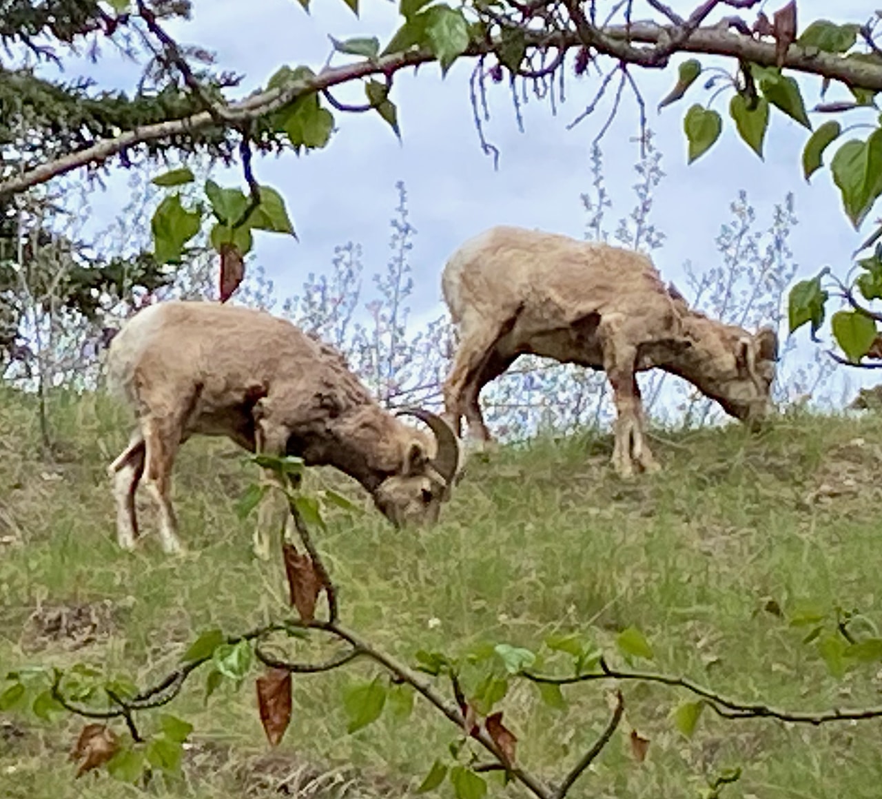 It’s tough to not be distracted by bighorns! They looked pretty content up on the hillside. Rams were definitely more plentiful today, but one ewe (fourth pic) is taking a break from all that testosterone and is off by herself. Other than on a grassy hillside, it’s common to see bighorns anywhere the salt truck went last winter – even if it’s the middle of the road.
