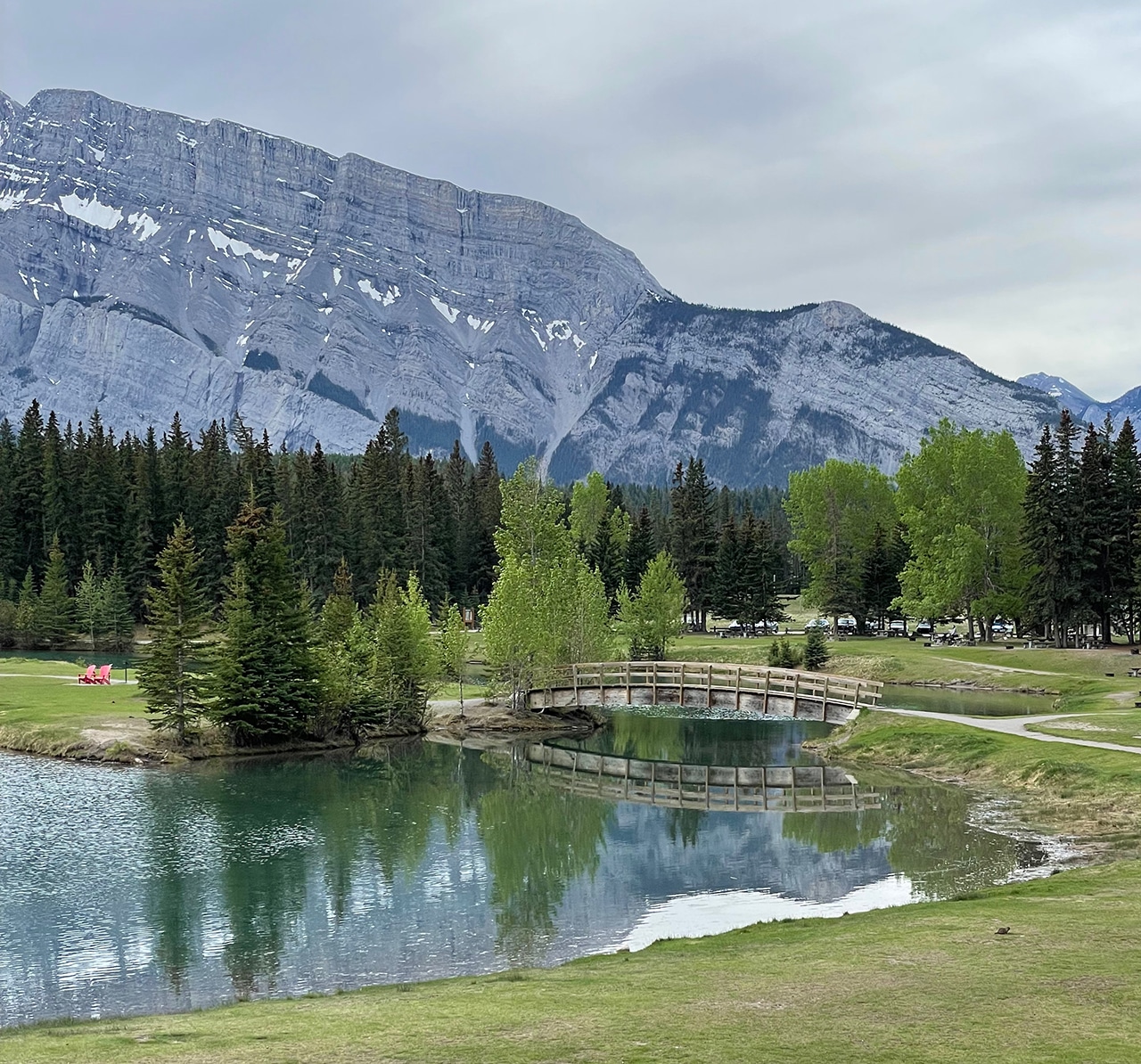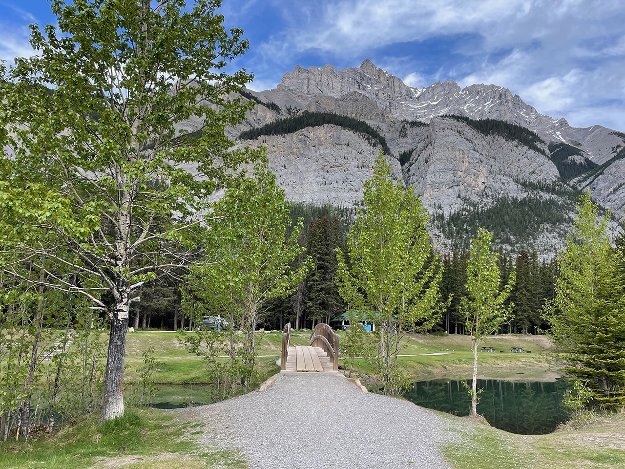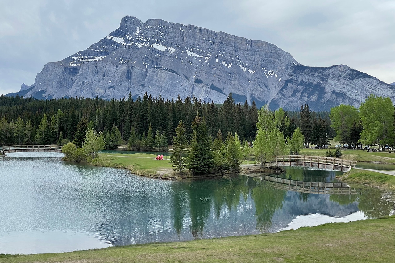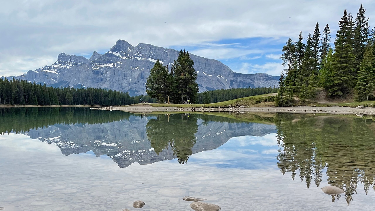 Mt. Rundle extends for almost eight miles with seven distinct peaks, so it dominates the backdrop at the lake. Two Jack Lake is actually connected to Lake Minnewanka – where we’re headed next. Both lakes are fed by the Cascade River, which originates from Cascade Mountain (which also feeds Cascade Ponds).